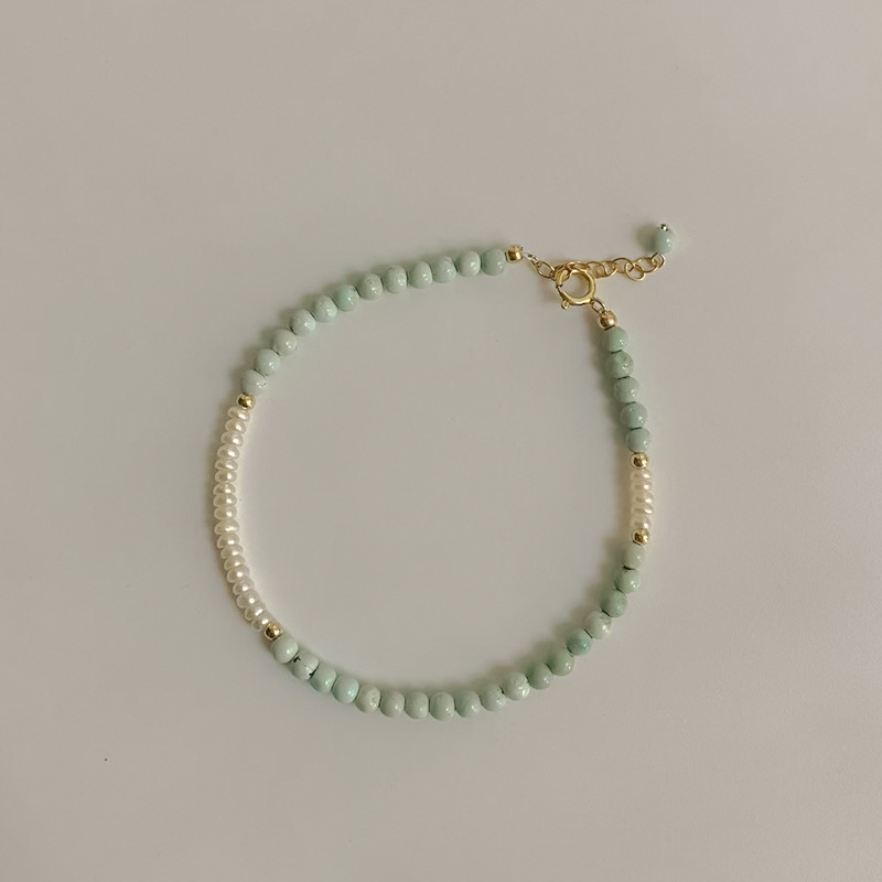 女性新中国式緑松石3mm湖北原鉱と淡水真珠を組み合わせてブレスレットをつなぎ合わせます。