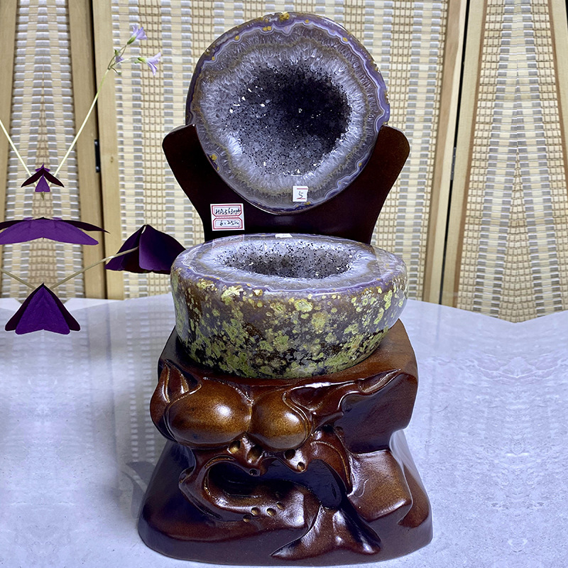 紫晶対洞置物ブラジル紫水晶洞原石聚宝盆銭袋置物開業プレゼント卸売り