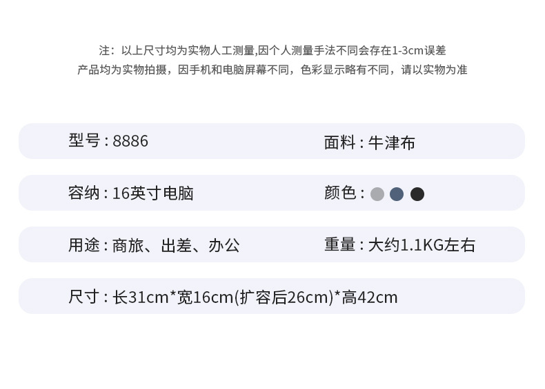 尺寸:31cm*16cm(扩容后26cm)*42cm