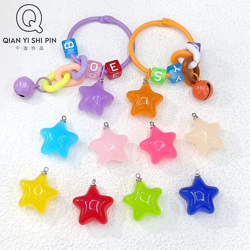 薇达饰品亚克力30MM彩色果冻五角星吊坠diy钥匙扣手机链包挂配件