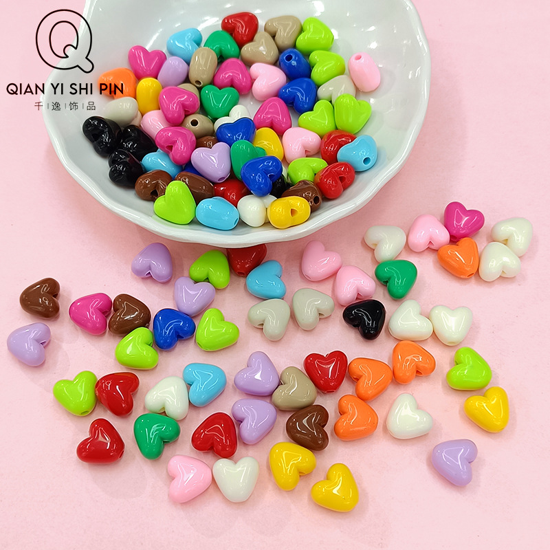 11mmアクリルカラー桃心ハート型ハート型縦穴ビーズdiy手作り携帯電話チェーンアクセサリー部品