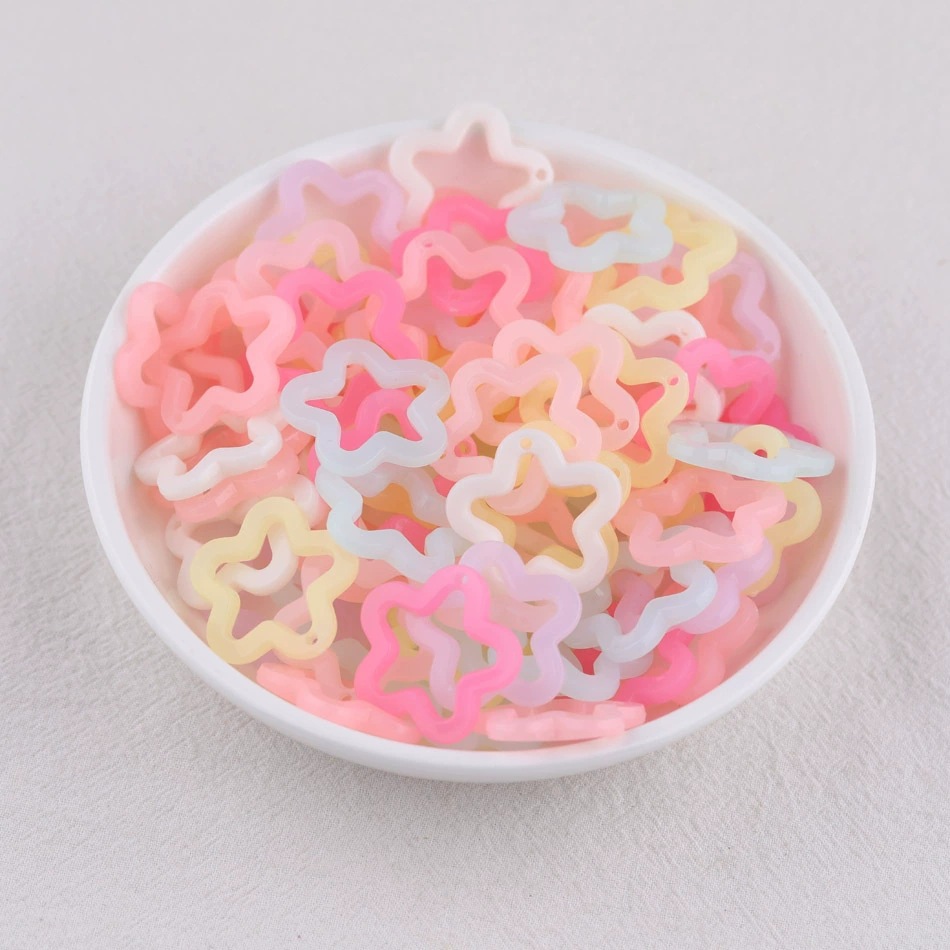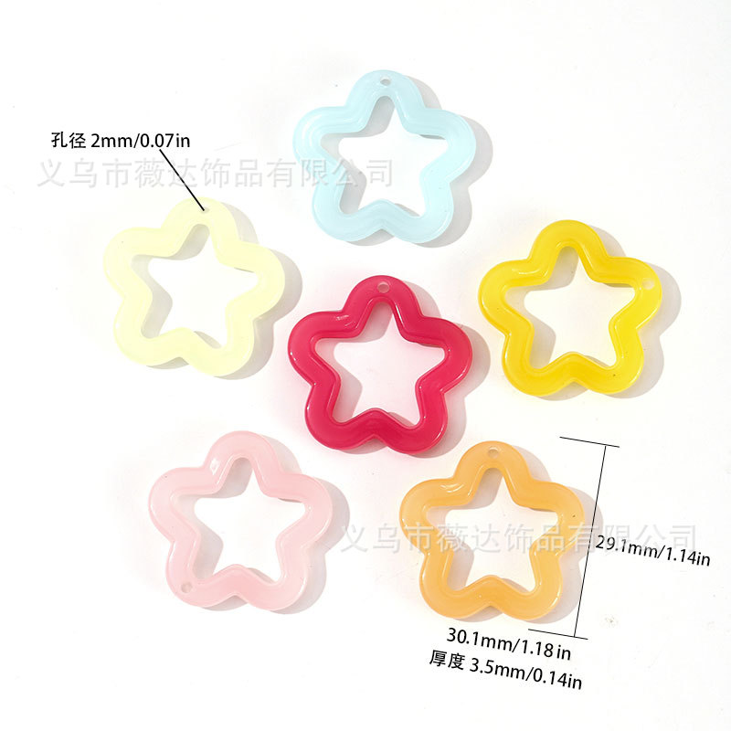 ゼリーカラー中空五芒星透明色吊り穴梅の花の形のスター diy キーホルダーハンドジュエリー材料アクセサリー