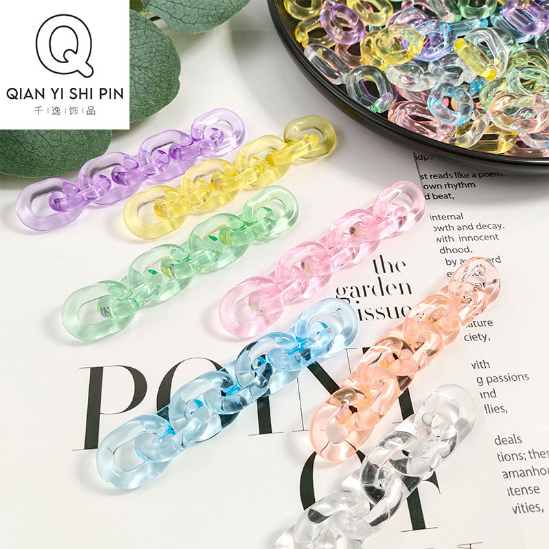 アクリルチェーン手描き17x23mmカラフルマカロンチェーンバックルdiyセットチェーンアクセサリー