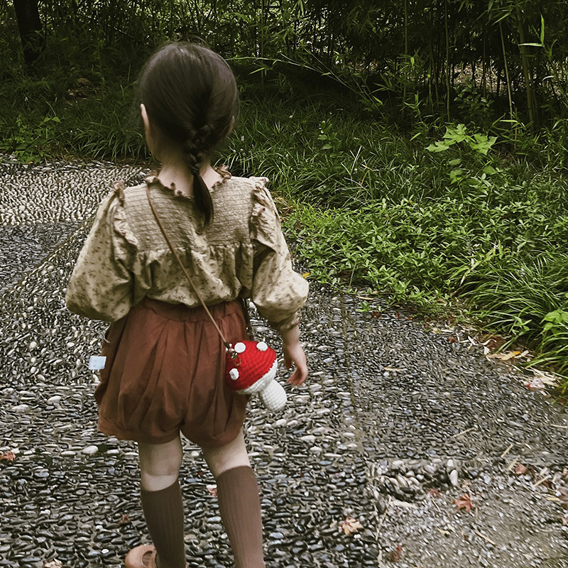 森系松果子供アクセサリー手作り毛糸鉤織キノコかわいい斜めバッグ幼児漫画少女バッグ