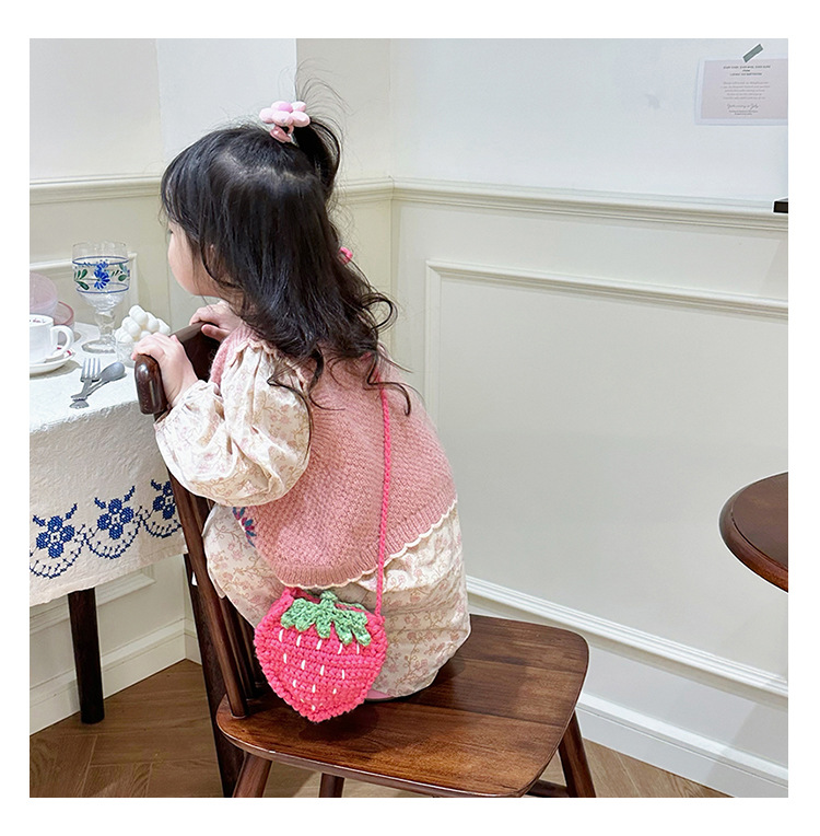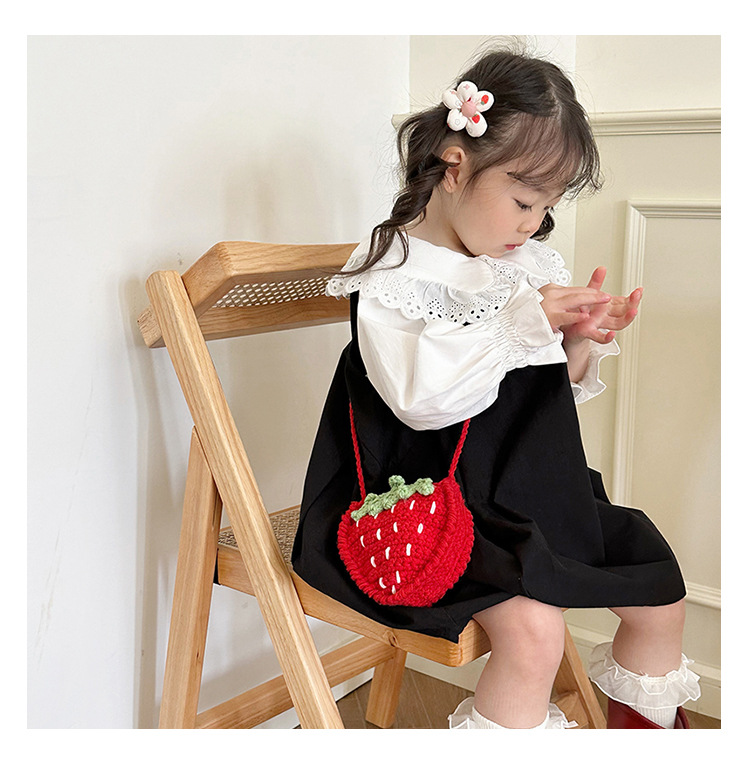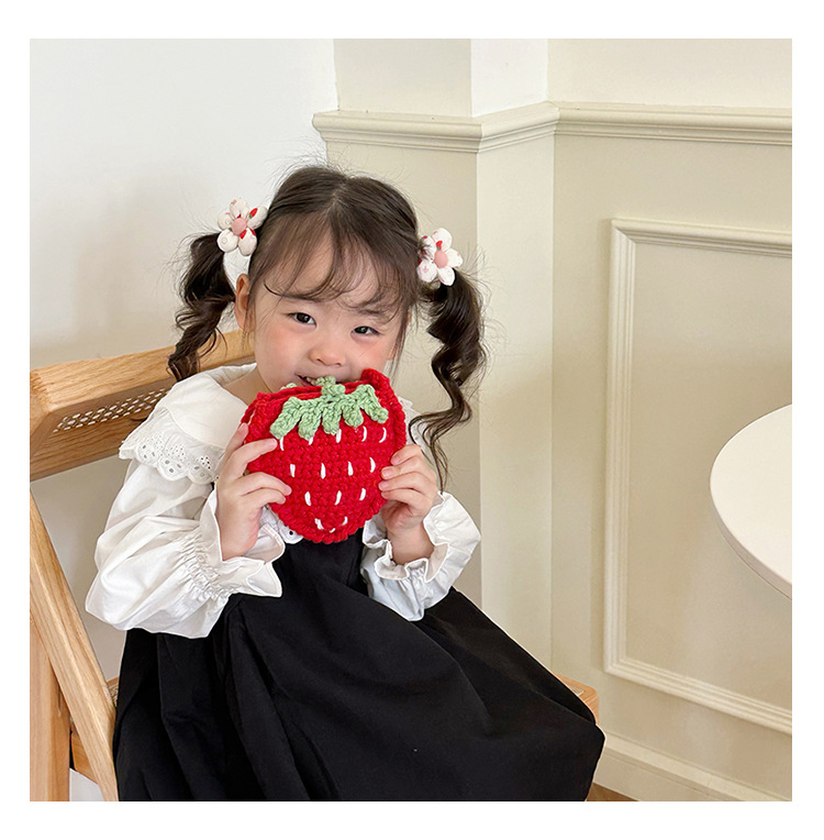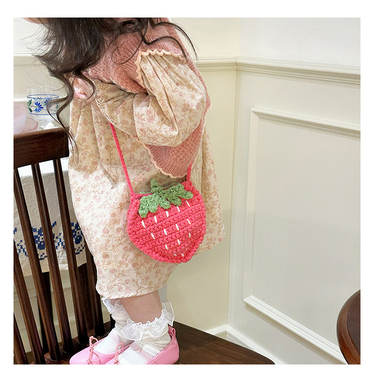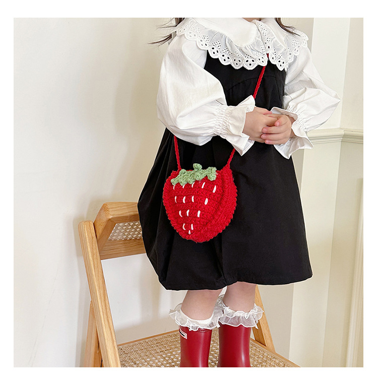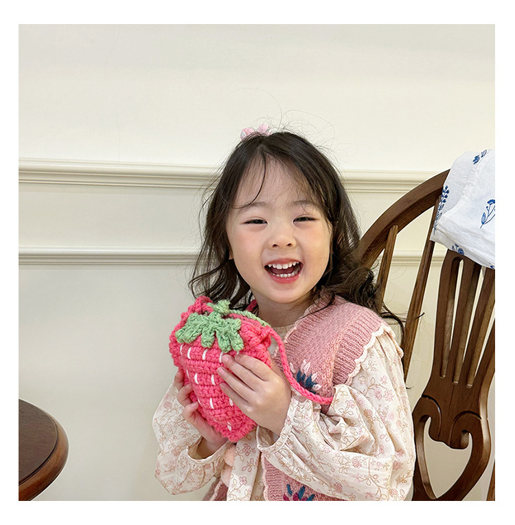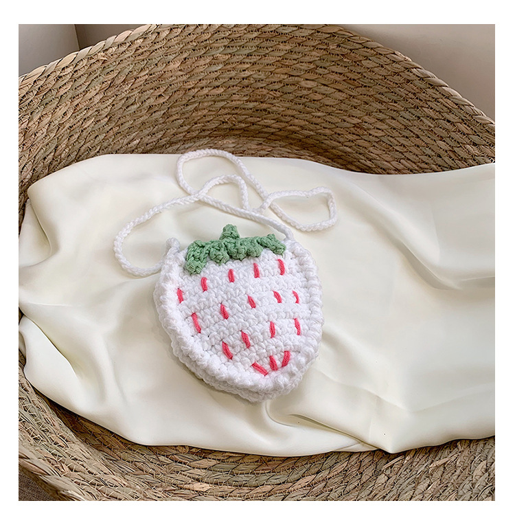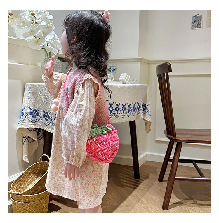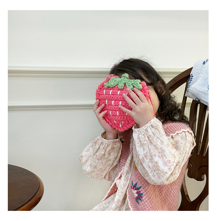 新しいかわいい手作りの毛糸の子供のバッグ手作りのかぎ針編みのイチゴの毛糸のバッグの完成品の手作りの女の子の斜め掛けバッグ