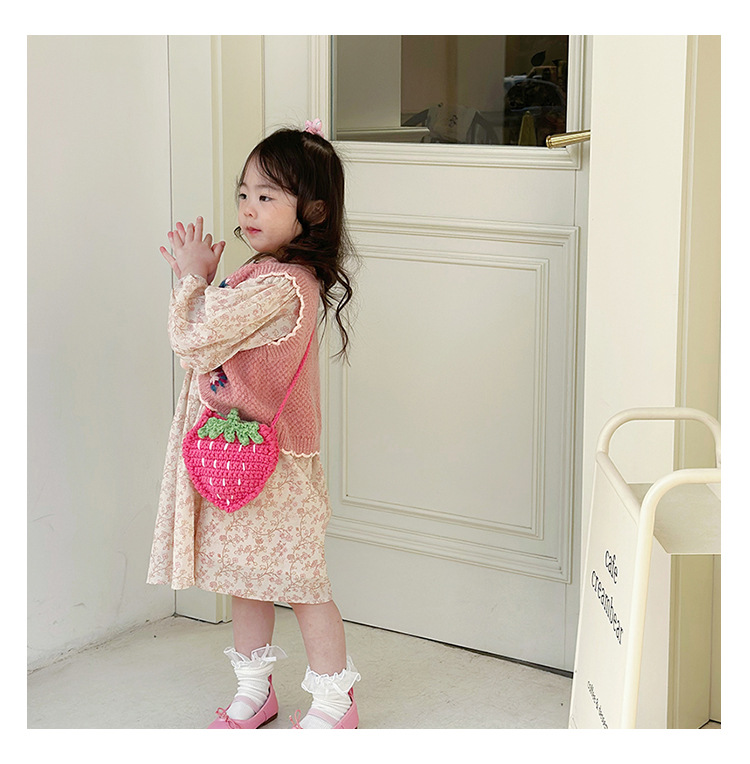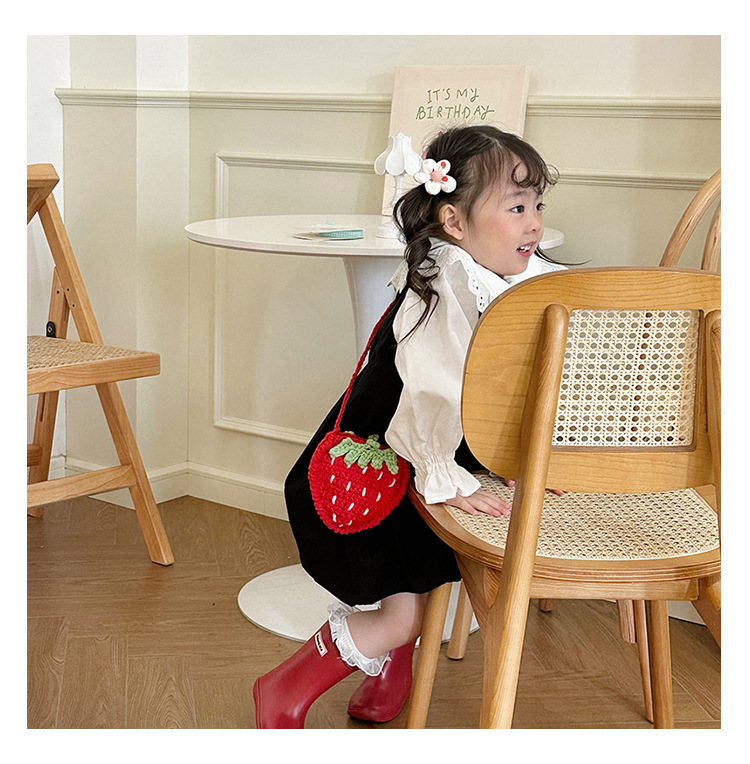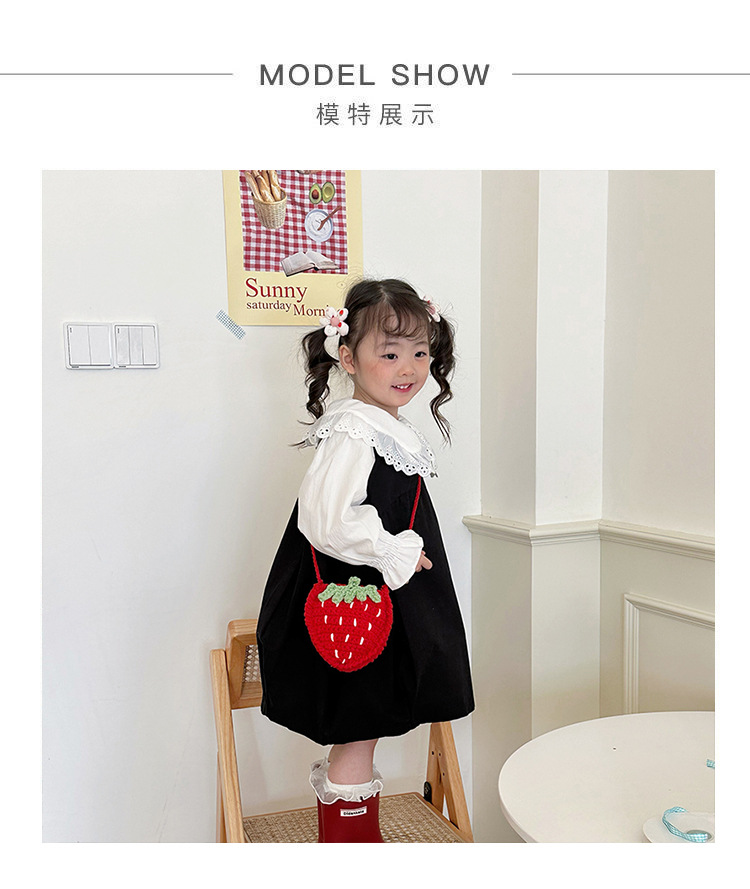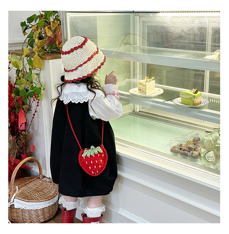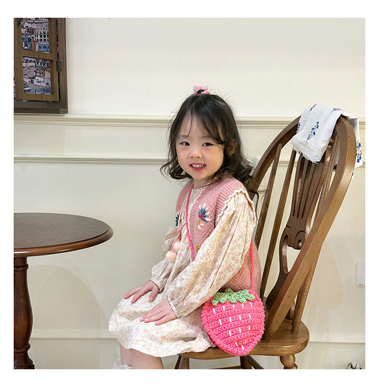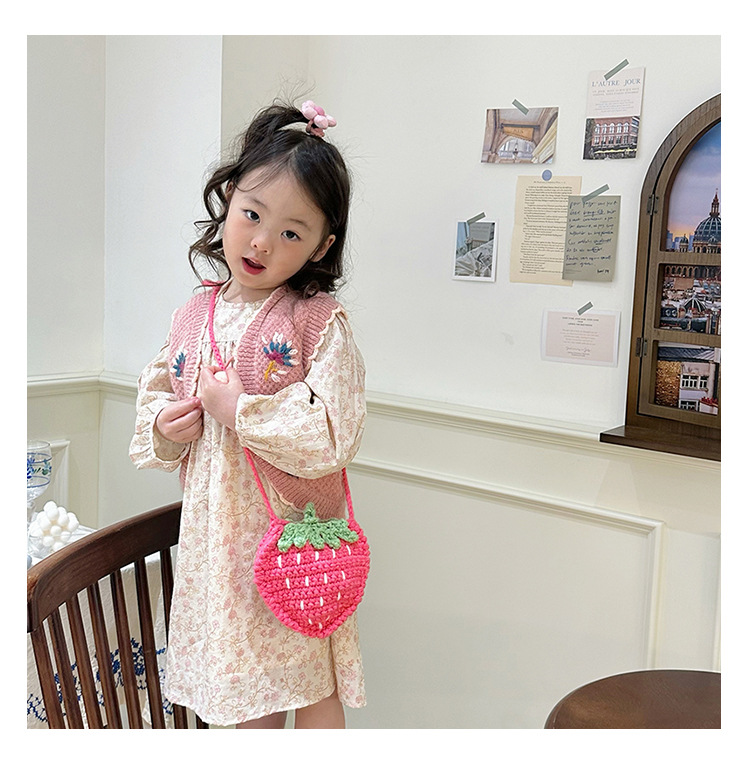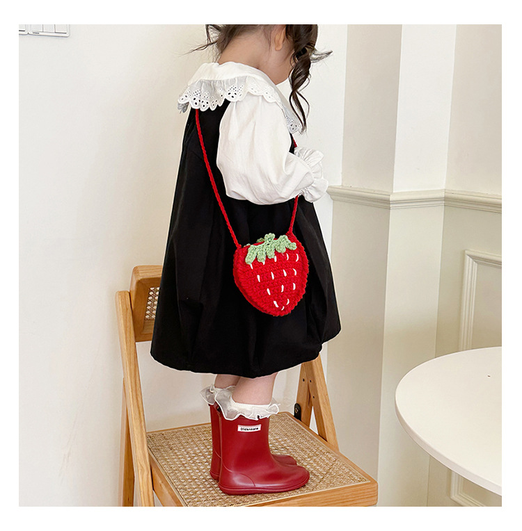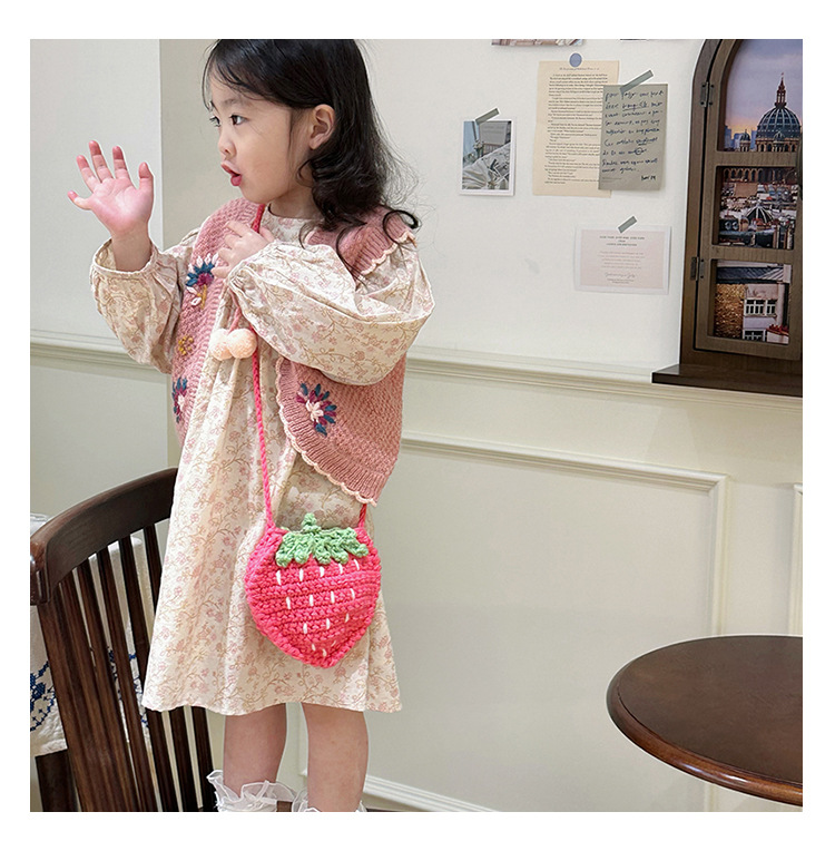新しいかわいい手作りの毛糸の子供のバッグ手作りのかぎ針編みのイチゴの毛糸のバッグの完成品の手作りの女の子の斜め掛けバッグ