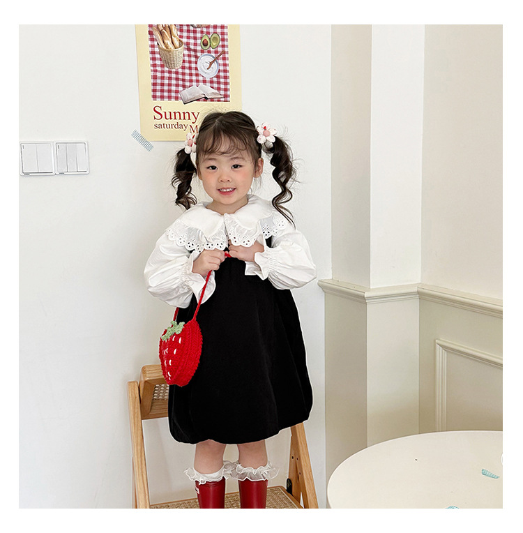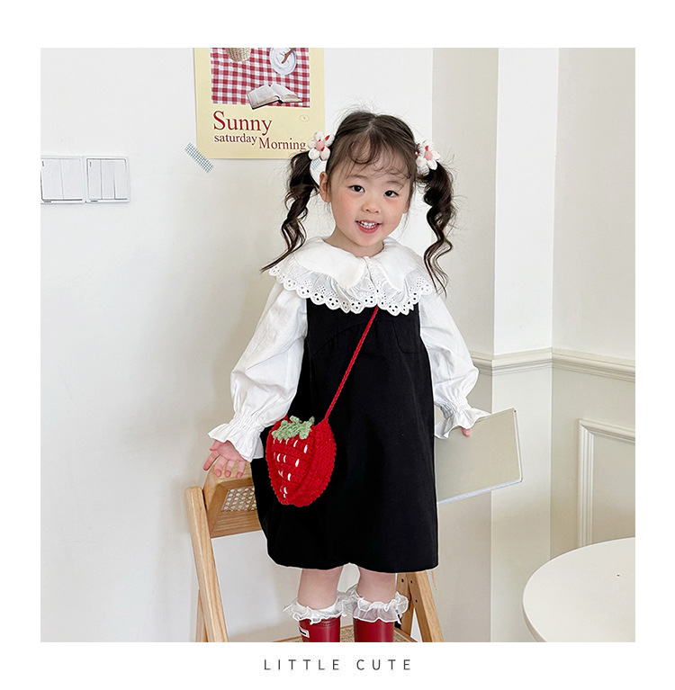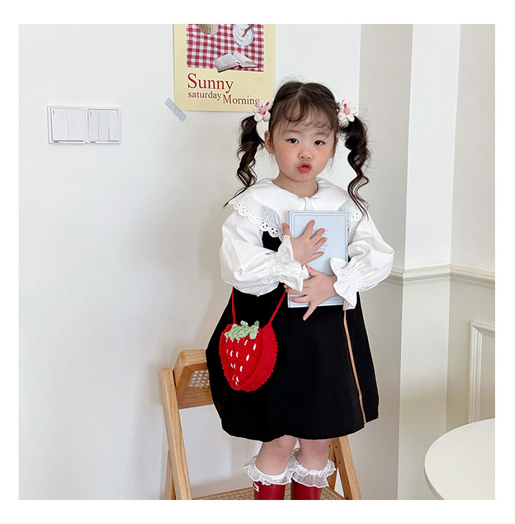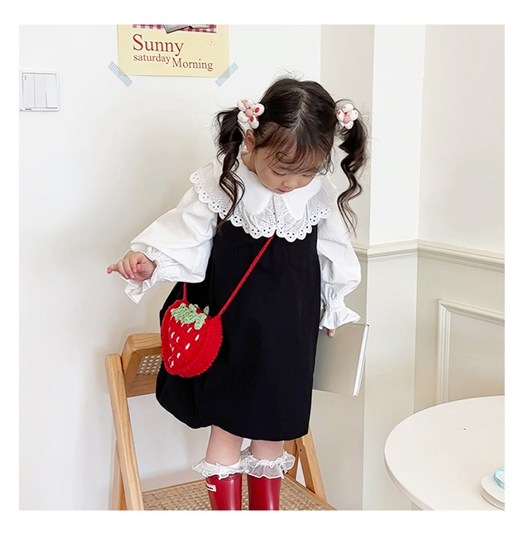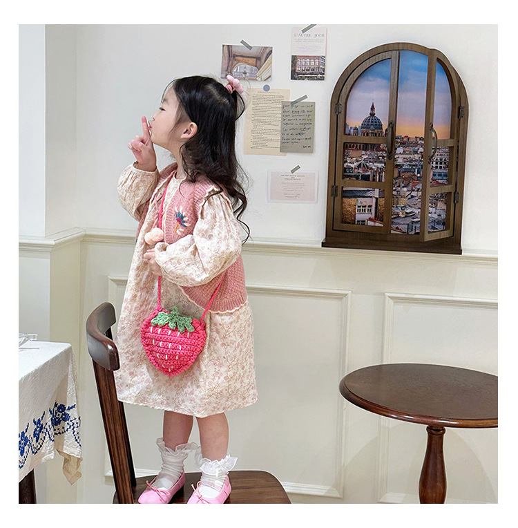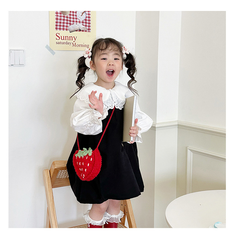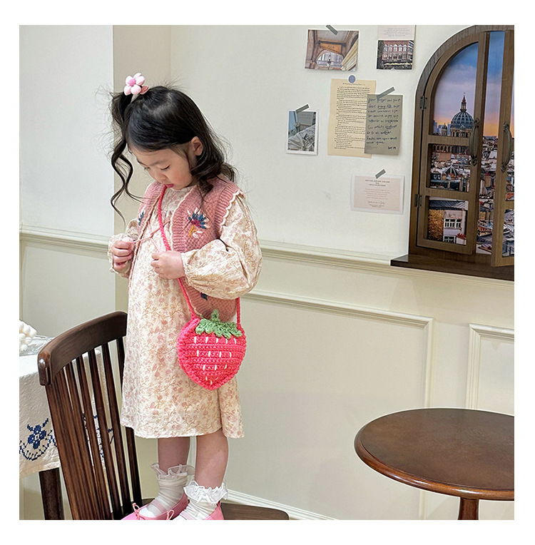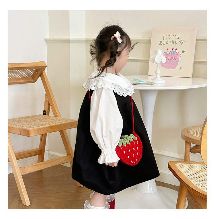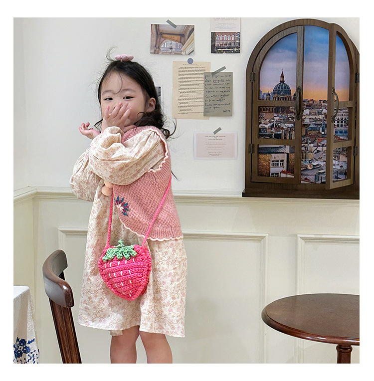 新しいかわいい手作りの毛糸の子供のバッグ手作りのかぎ針編みのイチゴの毛糸のバッグの完成品の手作りの女の子の斜め掛けバッグ