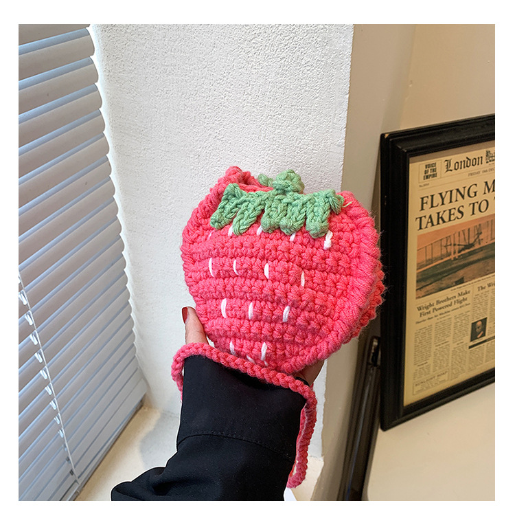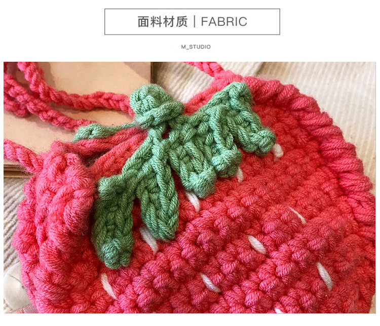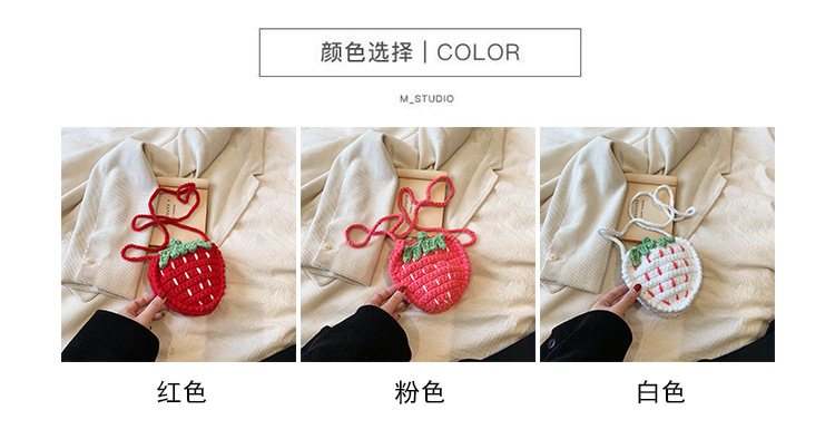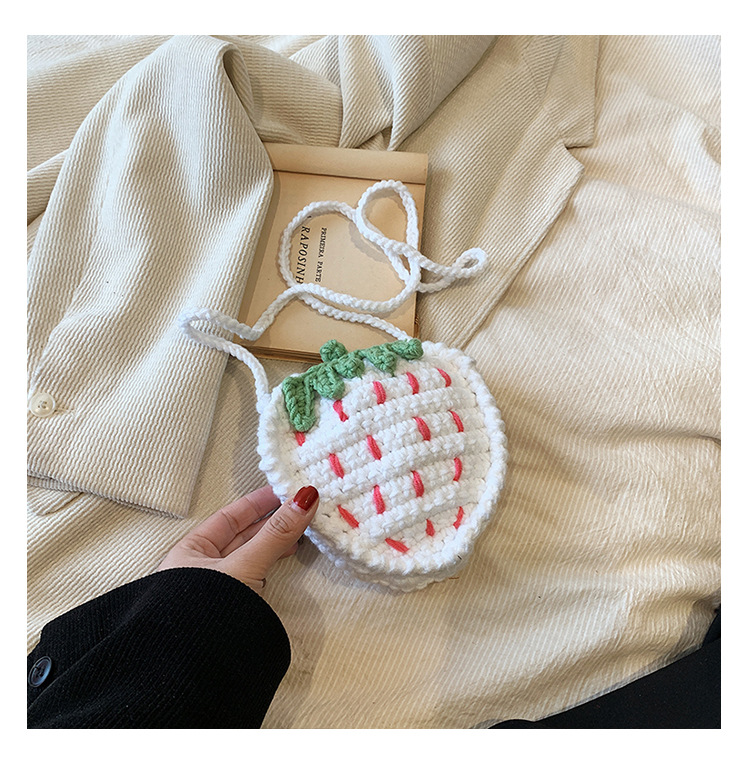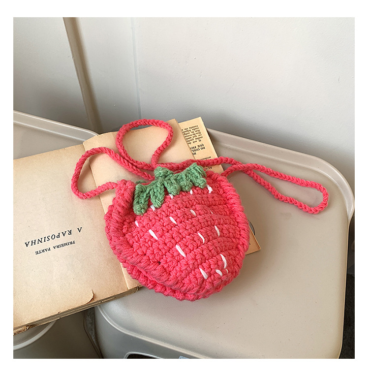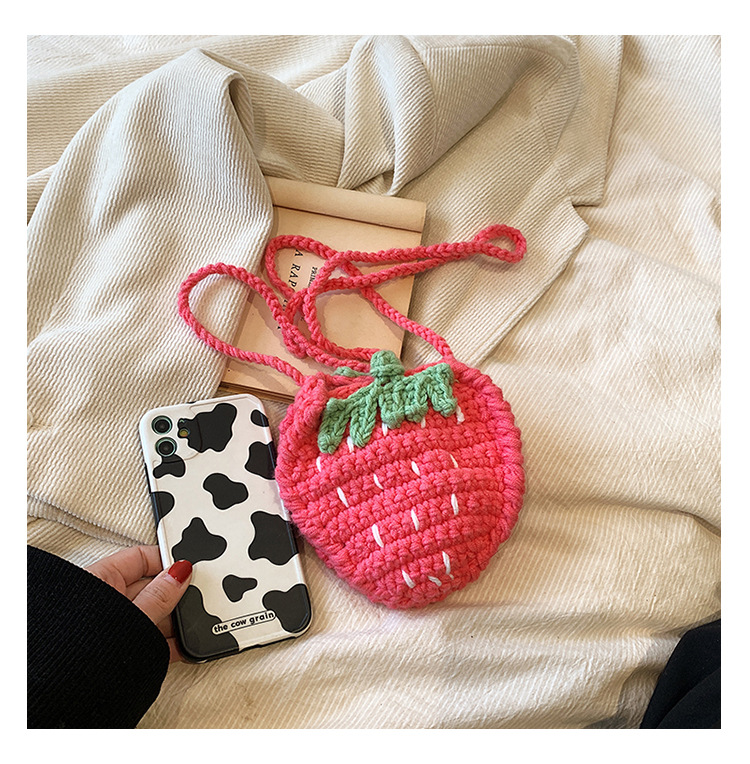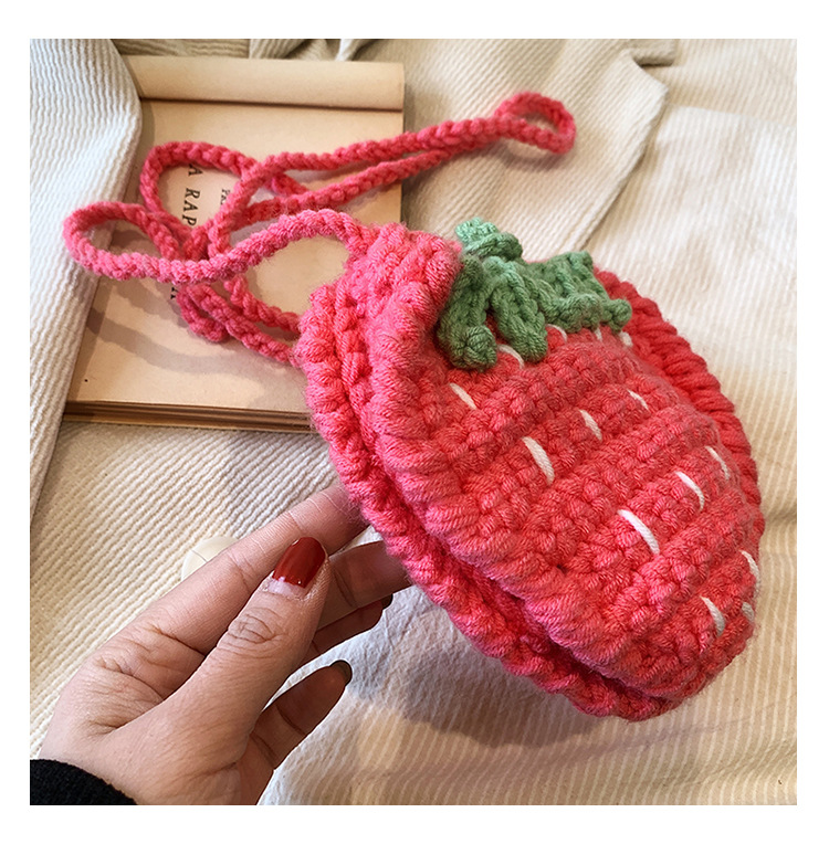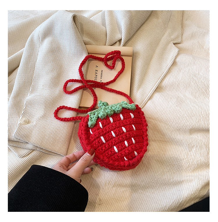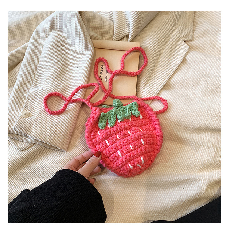 かわいいいちごバッグクロスボーダー手編み毛糸バッグ完成品ミニ口紅着女性ショルダーバッグ輸出