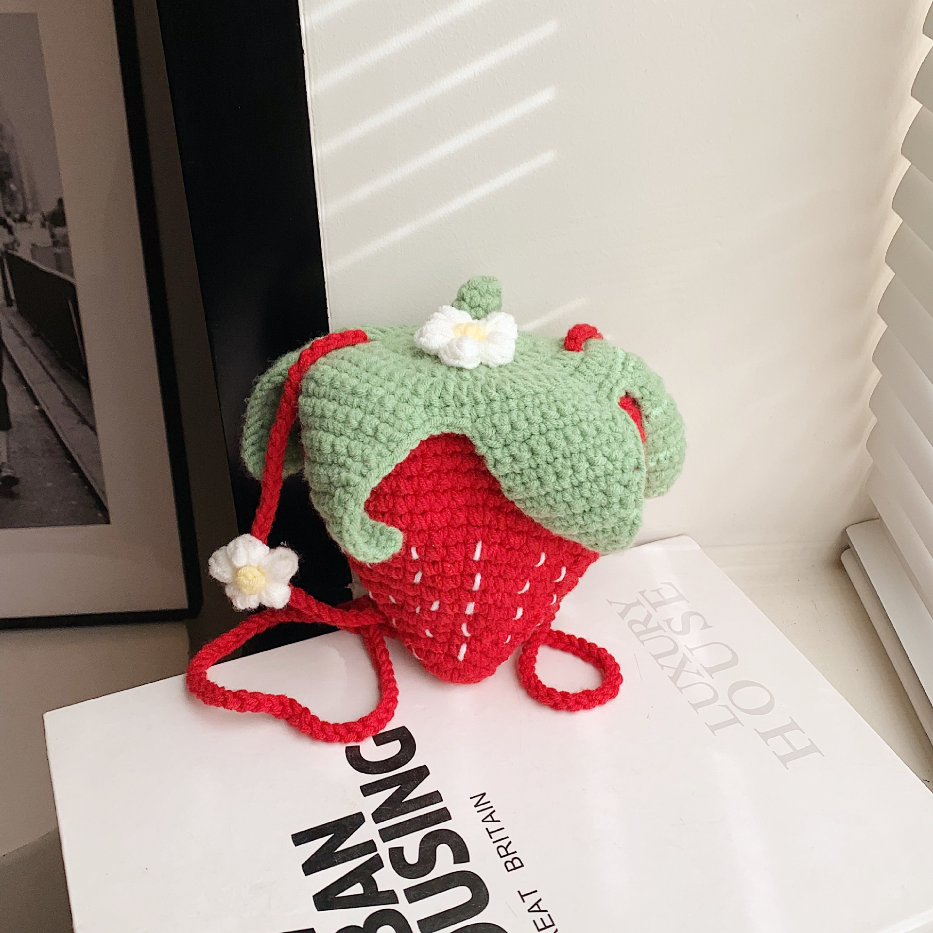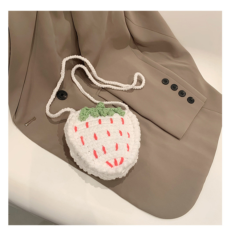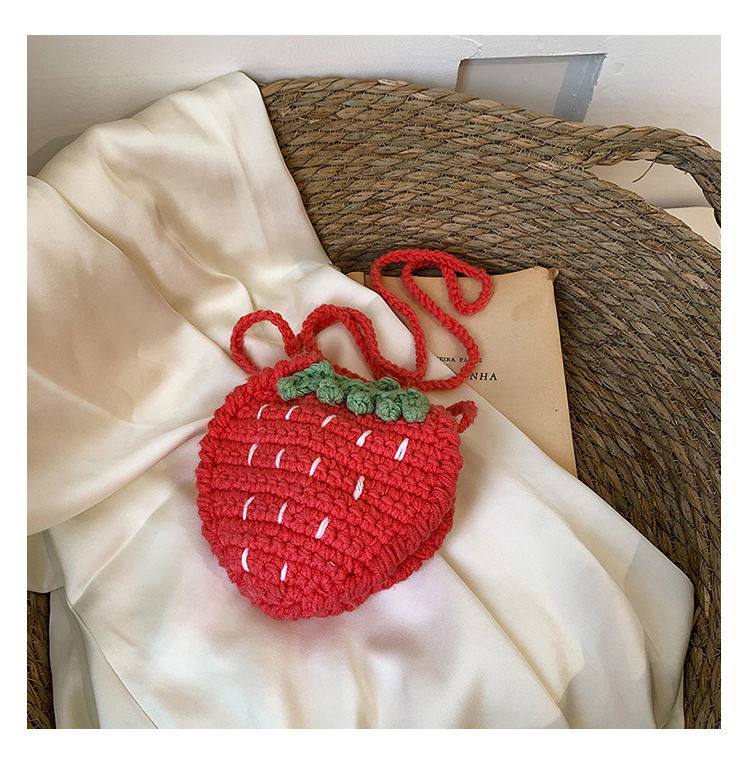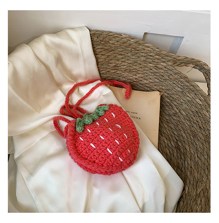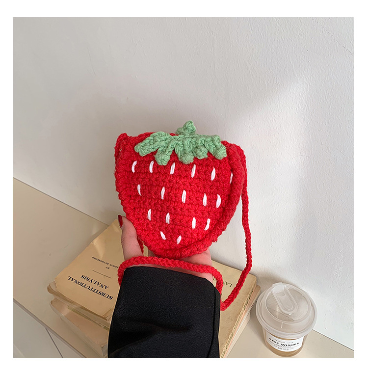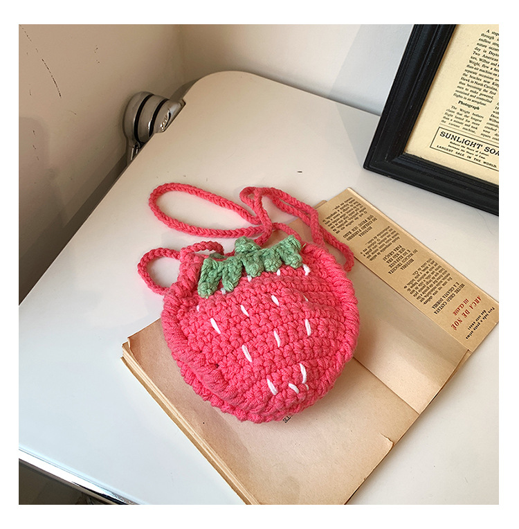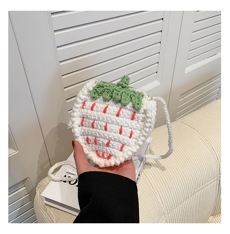 かわいいいちごバッグクロスボーダー手編み毛糸バッグ完成品ミニ口紅着女性ショルダーバッグ輸出