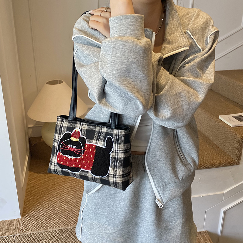 205新款可爱格纹单肩包韩版休闲百搭大容量包包时尚简约手拎包包