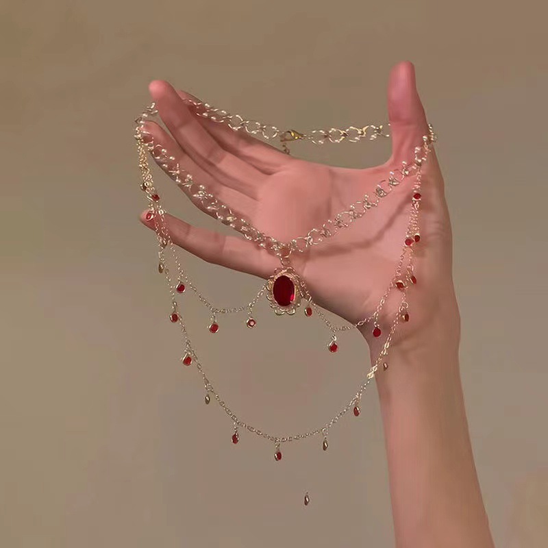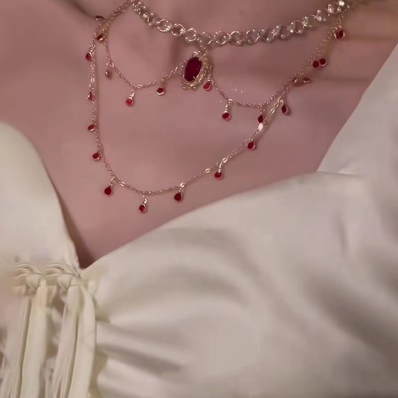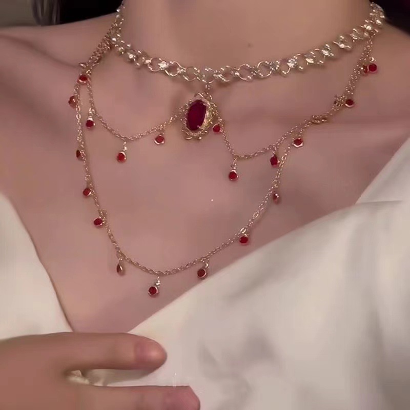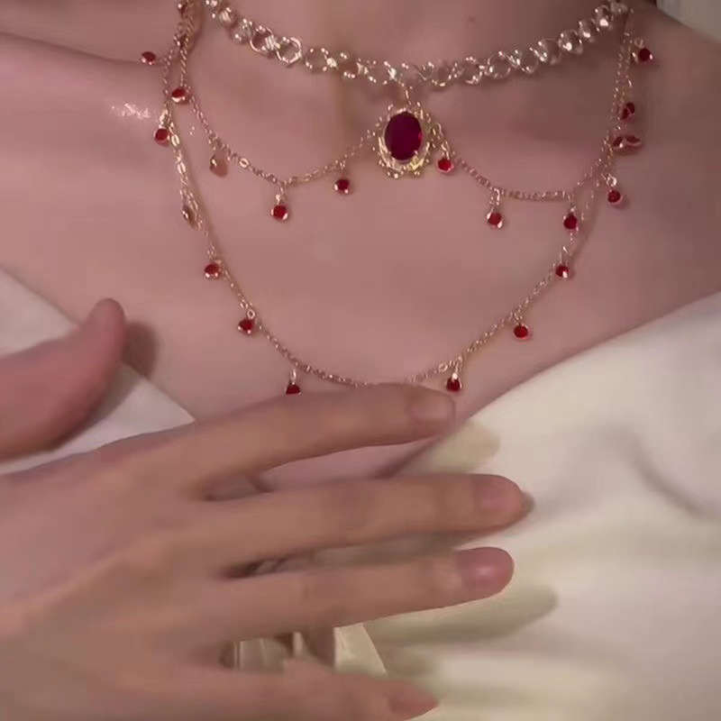 「绯紅の心配事」フランスの赤いジルコンのネックレスは高級感があります。
