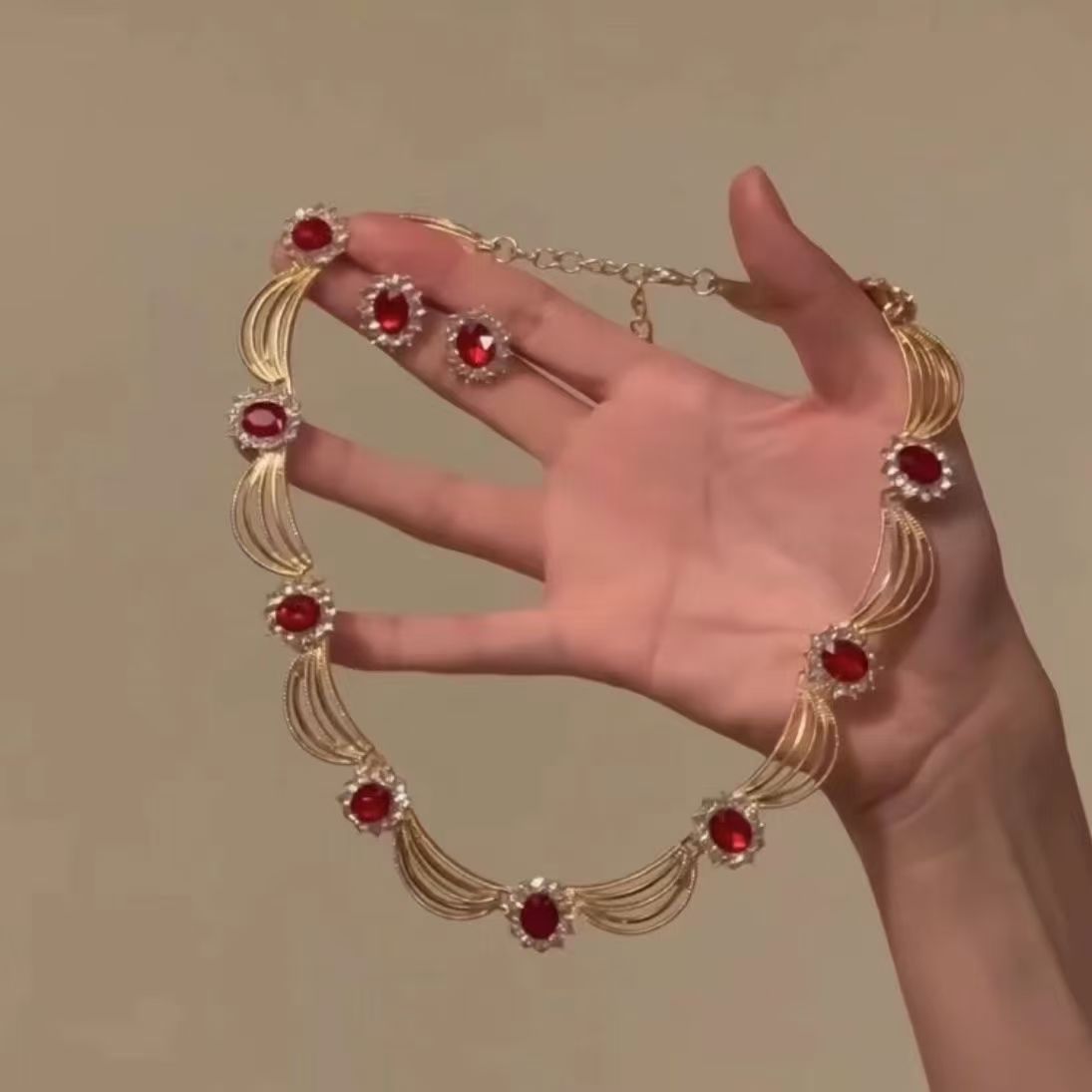 レトロ宮廷風赤いジルコンのネックレス