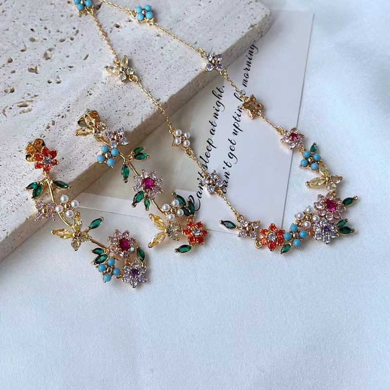 レトロで軽い豪華な色の花の蝶の真珠のジルコンのネックレスの小さい大衆の気質の高級感の個性は鎖の鎖に似合います。