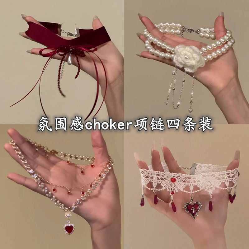 野心家原创【缪斯之语】酒红色蝴蝶结缎面颈链圣诞新年氛围感项链