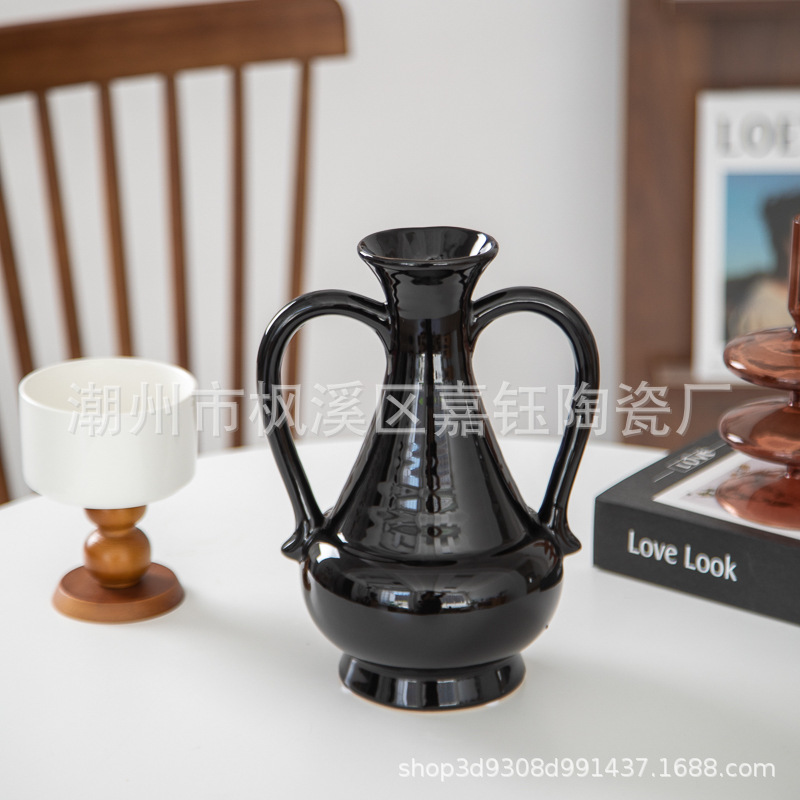 セラミック花瓶中古风高级感ソフトオーナメントレトロホーム置物モデルルームリビングルーム装饰生け花