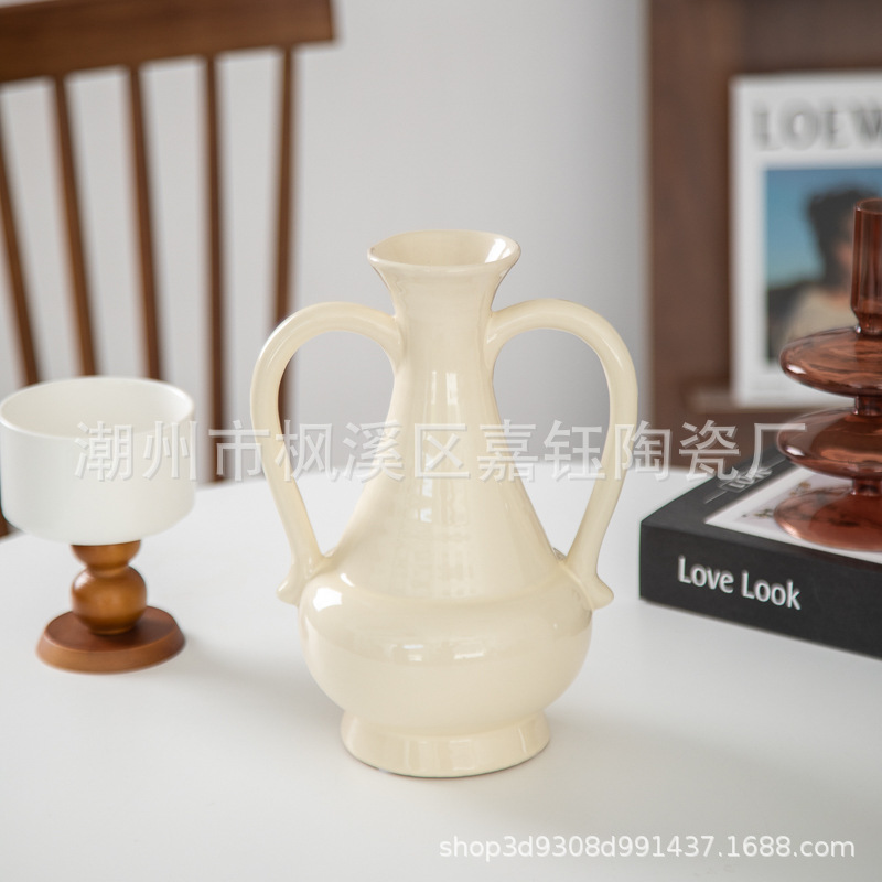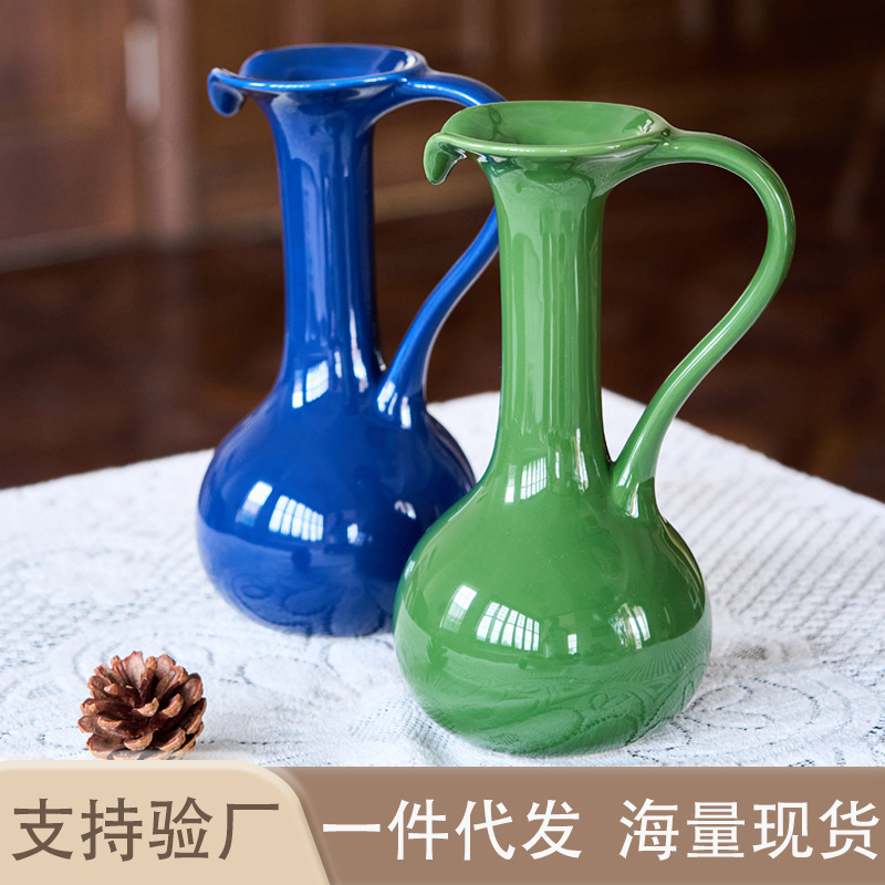 ネットで話題のレトロな片耳陶器花瓶、フラワーアレンジメント用、高級感、ニッチな新中式、軽奢な陶器花器