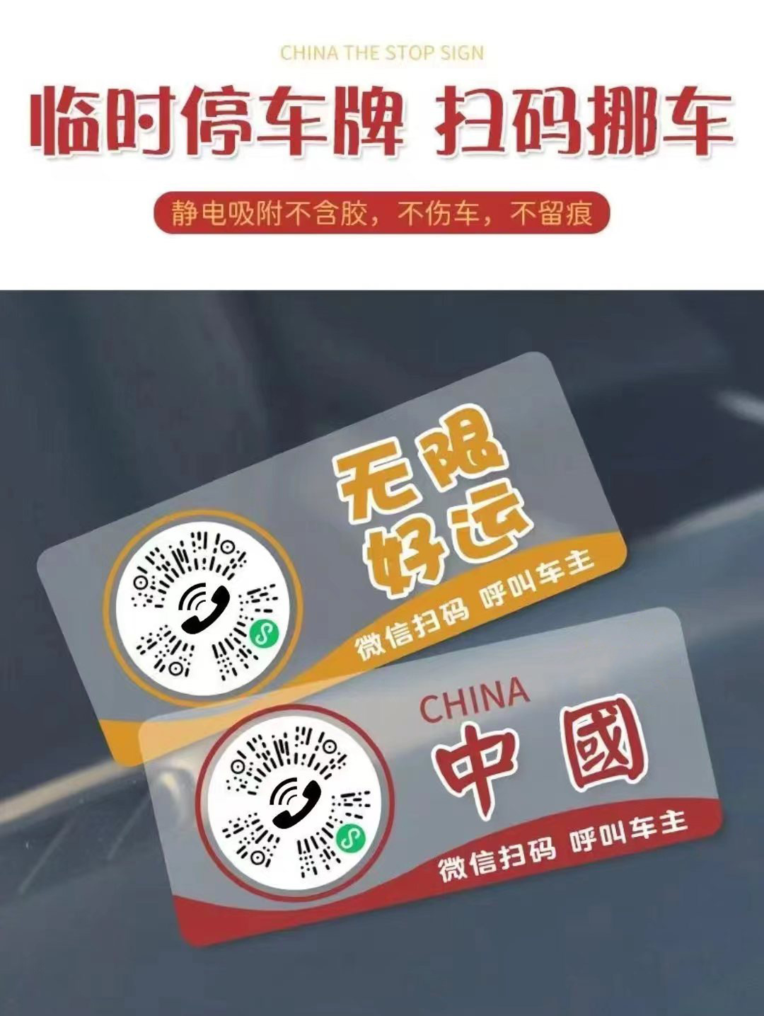 QRコード移動式駐車標識、静電気で移動できる車用駐車標識、電話番号、プライバシー保護、クリエイティブな車載防水タイプ