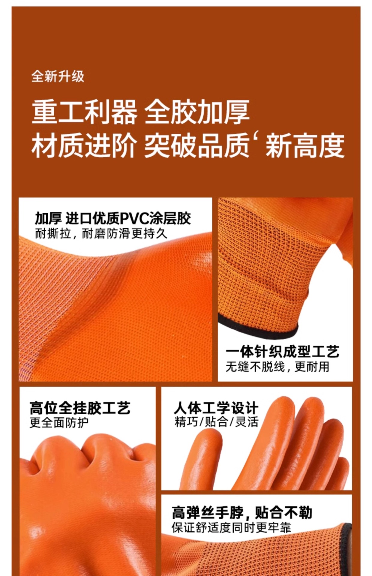 労働保護手袋耐摩耗性防水耐油滑り止め接着剤作業現場で働くpvcゴム皮厚ゴム手袋
