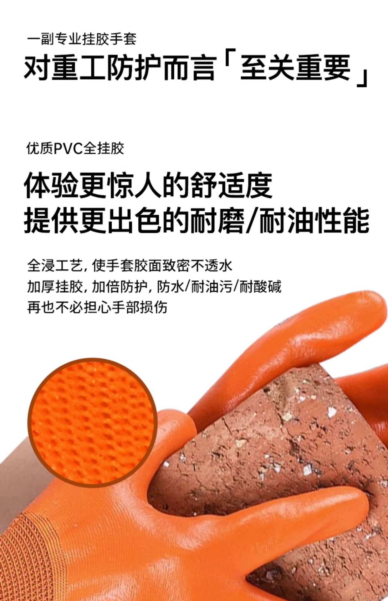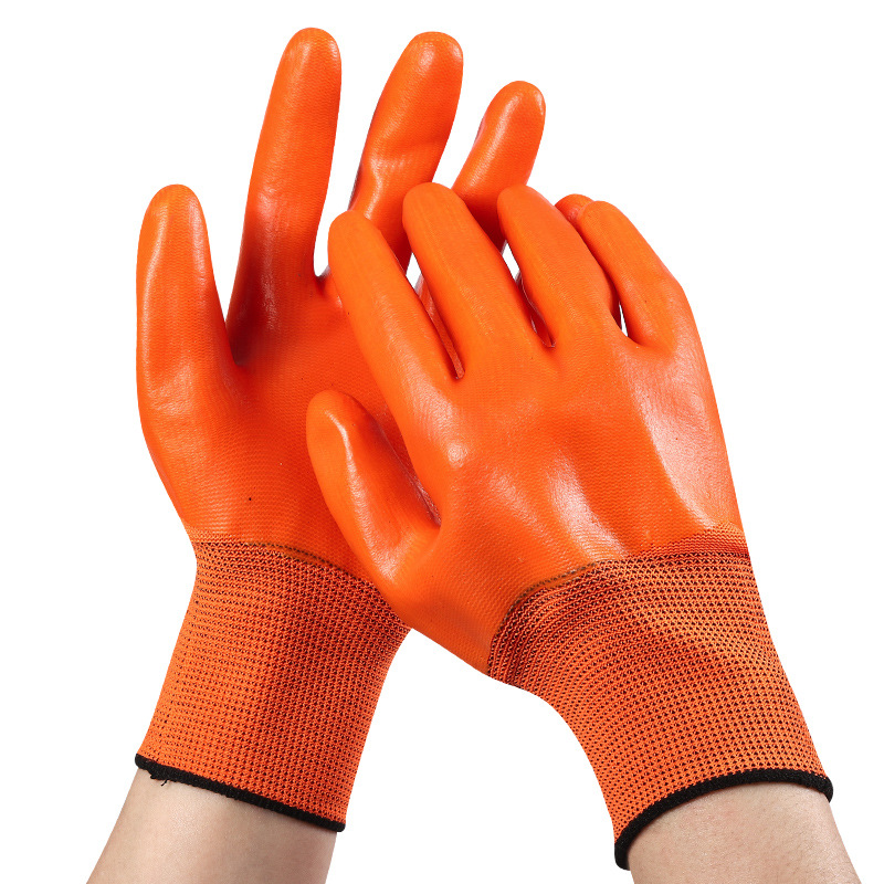 労働保護手袋 PVC 完全吊り下げ耐油性厚みのある耐摩耗性保護滑り止めナイロン吊り下げゴム通気性作業手袋