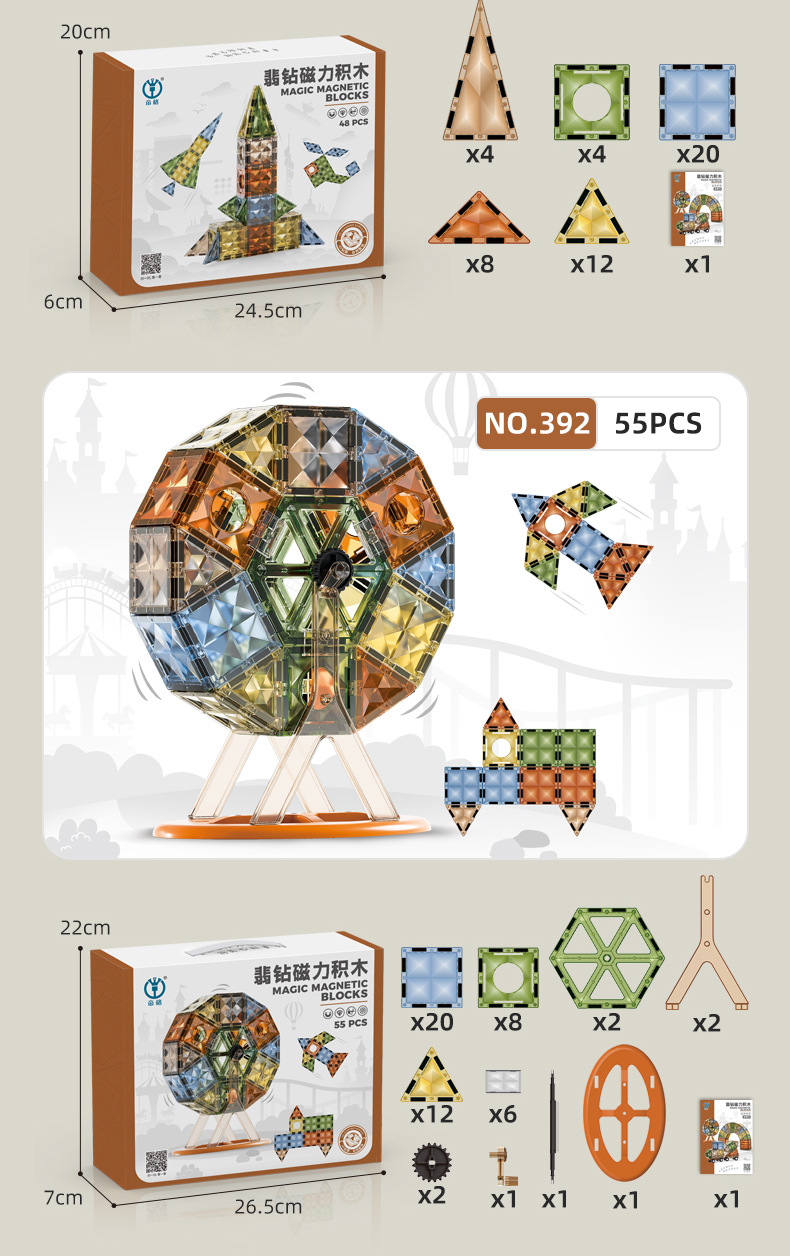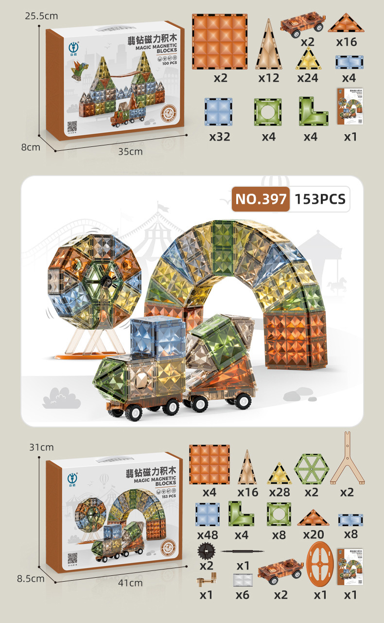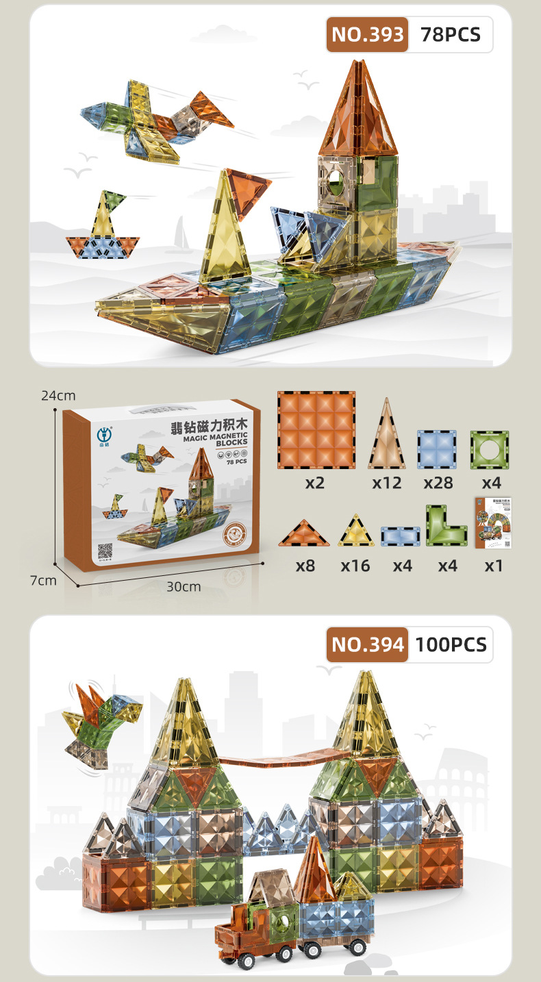 ドリル面磁力片積み木28pcs,ドリル面磁力片積み木48pcs,ドリル面磁力片積み木55pcs,ドリル面磁力片積み木78pcs,ドリル面磁力片積み木100pcs,ドリル面磁力片積み木153pcs