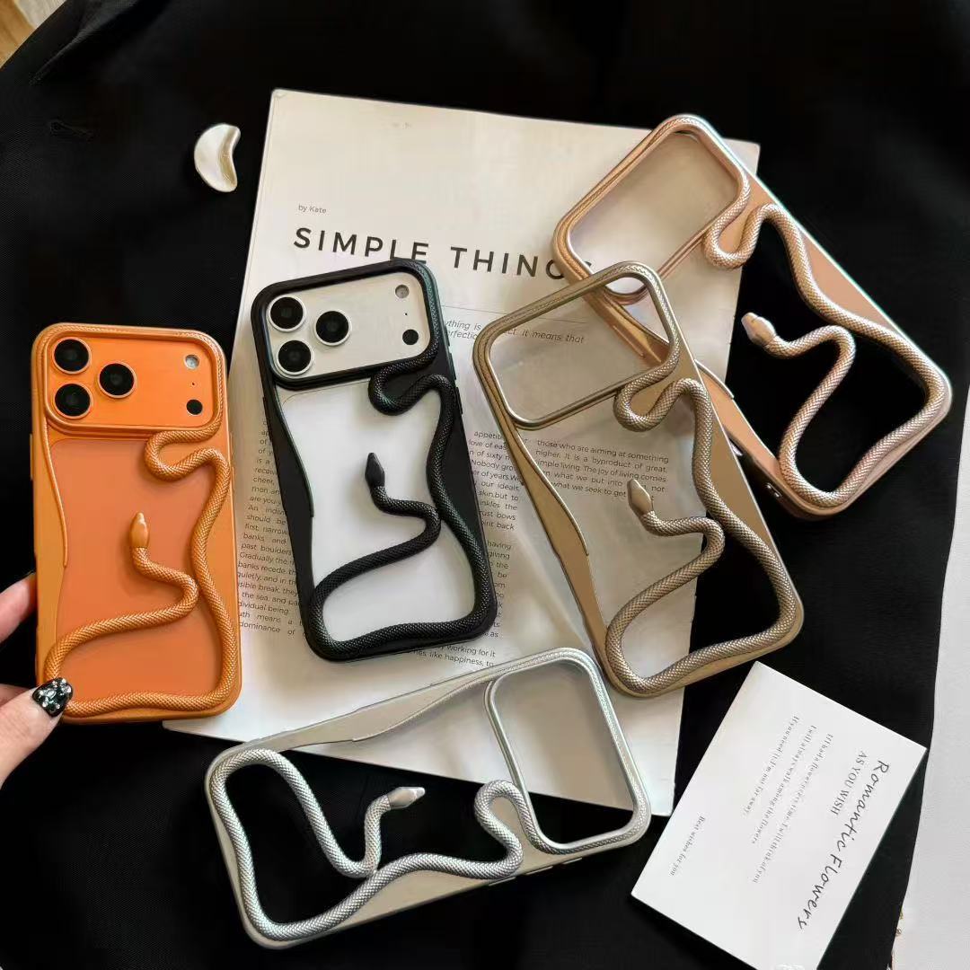 つや消しマット中空ヘビ iPhone17promax 携帯電話ケース Apple 16pro 電気メッキ 15 立体 14P に適しています
