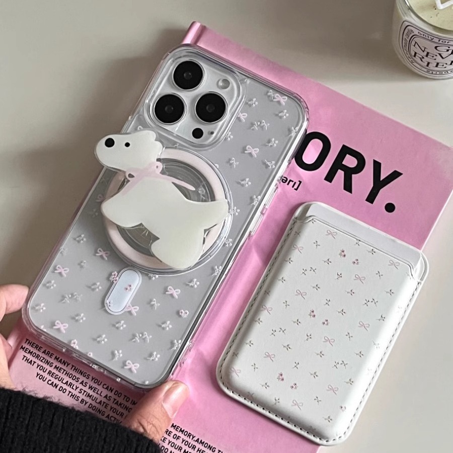 蝶結びの子犬のカードのカバーの皮質のマギーの安全な強い磁気はカードを吸収してリンゴのファーウェイの携帯電話の携帯電話のカバーの15背中にカードのカバーを貼ります。