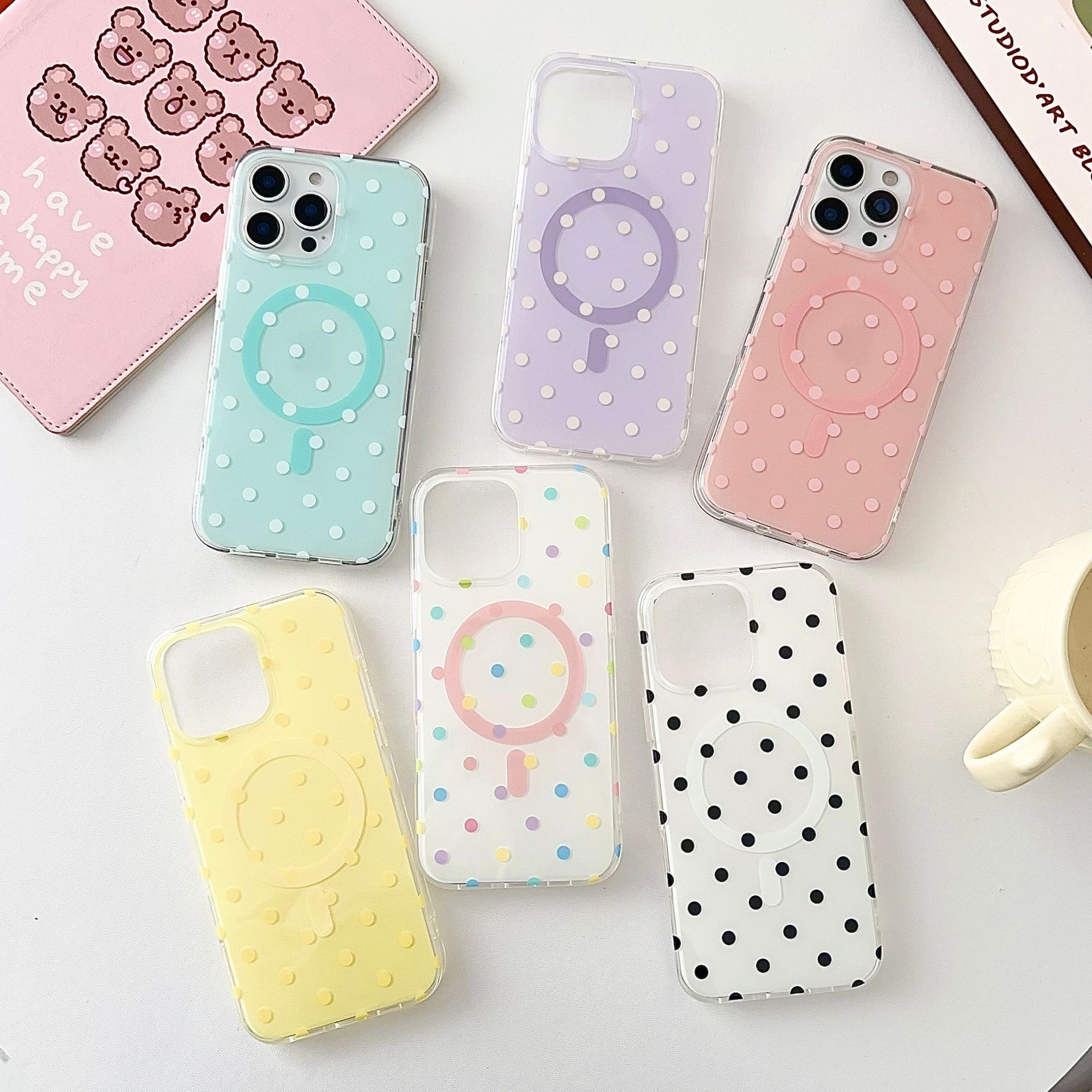 爱心马卡龙色适用苹果15/16Pro防摔磁吸壳13/14圆点七彩保护套17