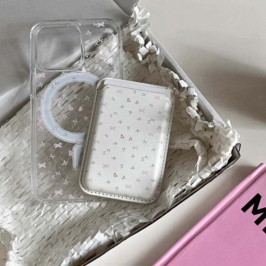 ピンクのリボンの携帯電話ケース,ピンクのリボン付きマグネット式カードケース