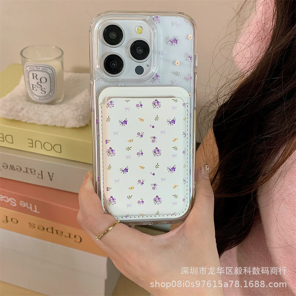 適用アップルマグセーフ磁気吸引カードバッグクロスボーダーアップル15モデルカードバッグ13promax粉砕花pu皮