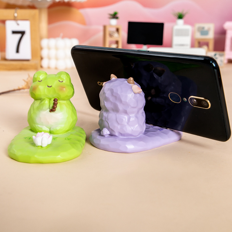 かわいい喜気蓮の携帯電話のスタンドの置物の仏陀系の家庭の樹脂の置物のデスクトップのタブレットの携帯電話のスタンドの卸売り