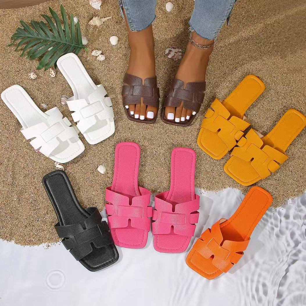 春の新作対外貿易婦人靴平底スクエアトゥレザースプライシングスリッパ女性のクロスボーダー女性サンダル