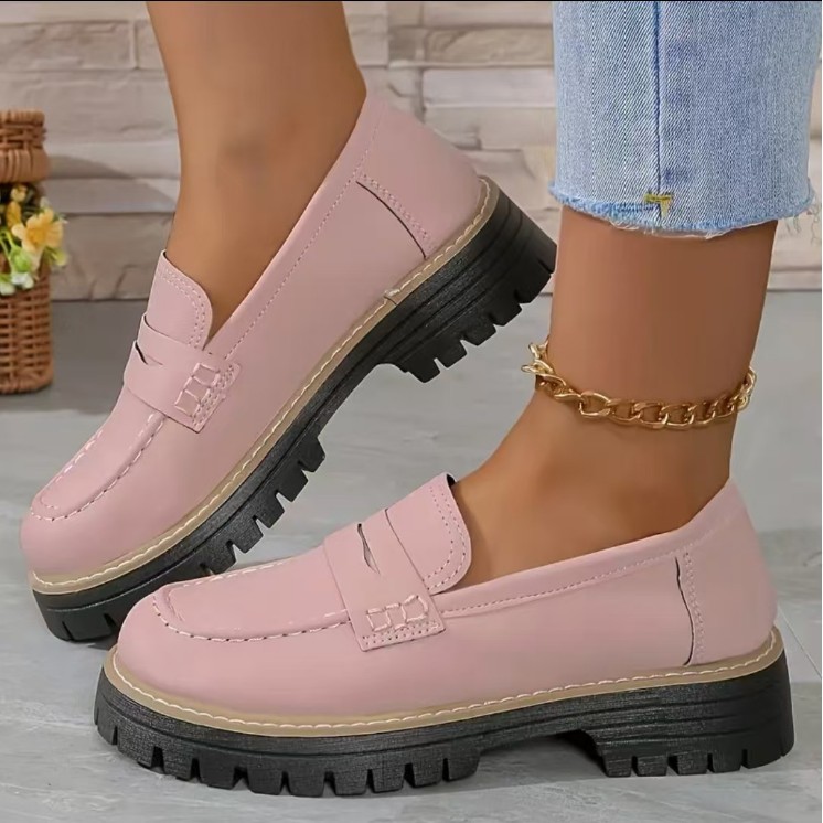 2025 春と秋の新作ローファー大きいサイズカジュアルつや消し英国スタイルの女性の靴厚いヒール厚底外国貿易レトロ