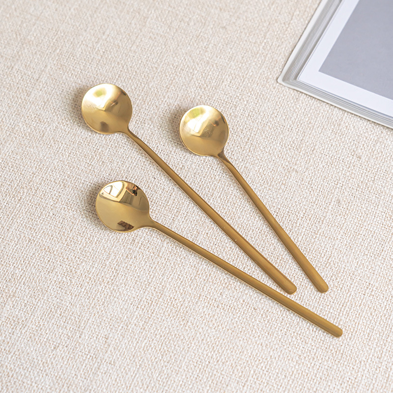 シンプルな現代の金色のステンレススプーンの下のお茶のコーヒースプーンの攪拌スプーンの洋食のケーキのデザートのスプーンの朝食のスプーン