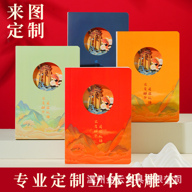 新款3D立体镂空纸雕笔记本景区旅游打卡集章盖章本文创纪念订 做