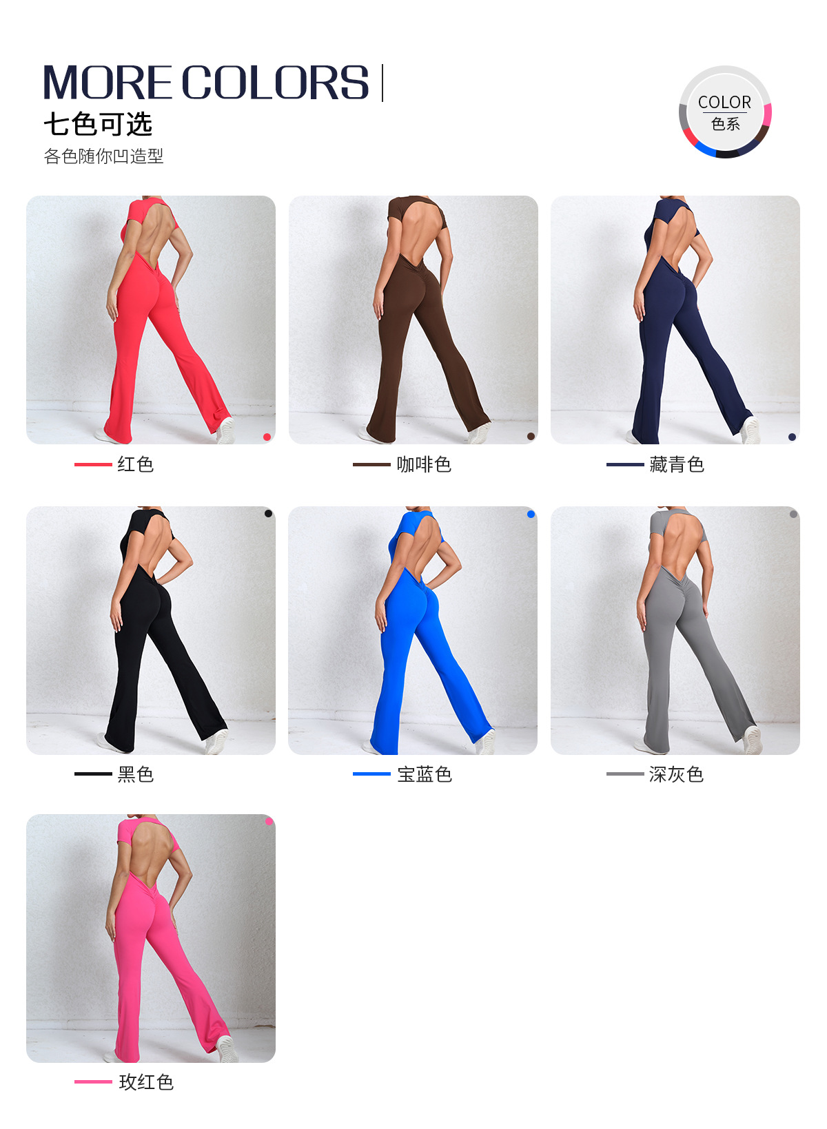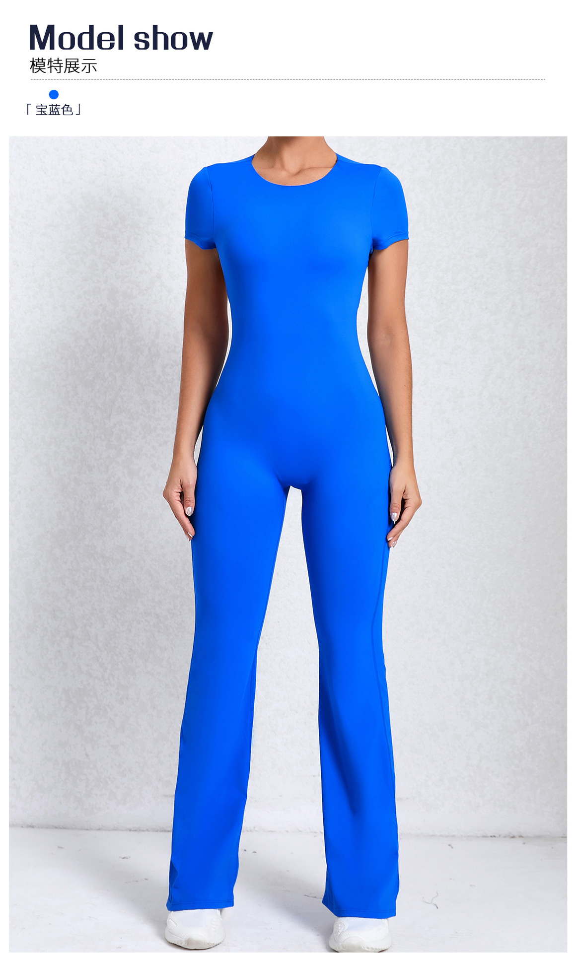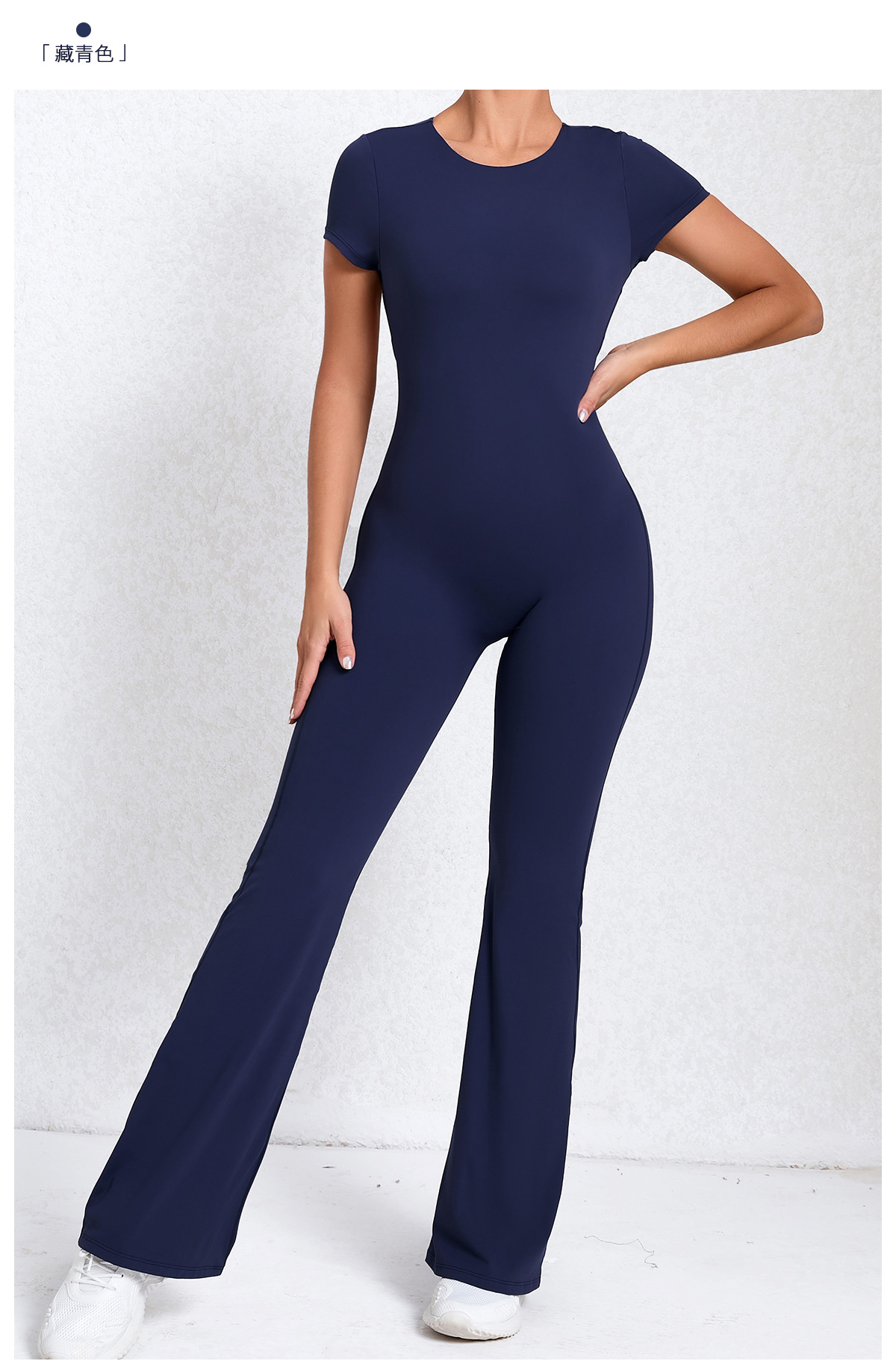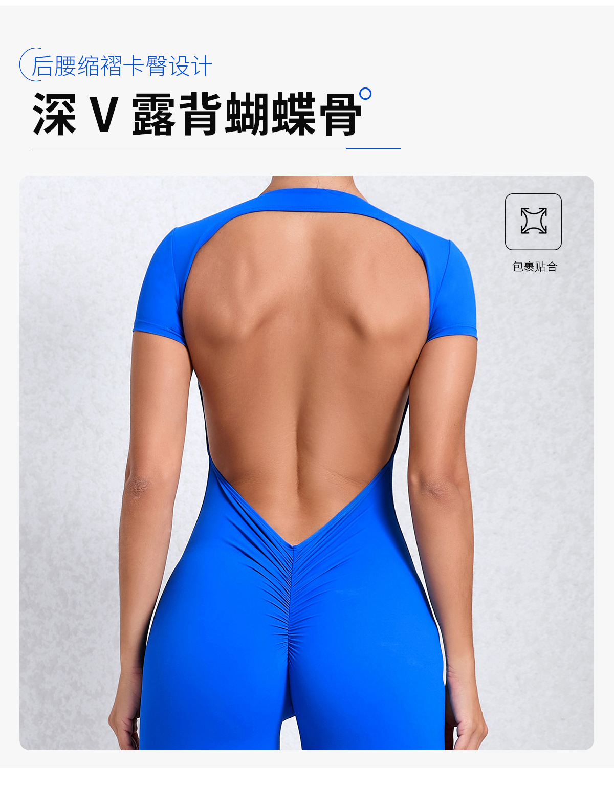 欧米のタイトな速乾のヨガのワンピースのヨガの服の半袖は背中を露出して尻を上げる運動のフィットネス服89071