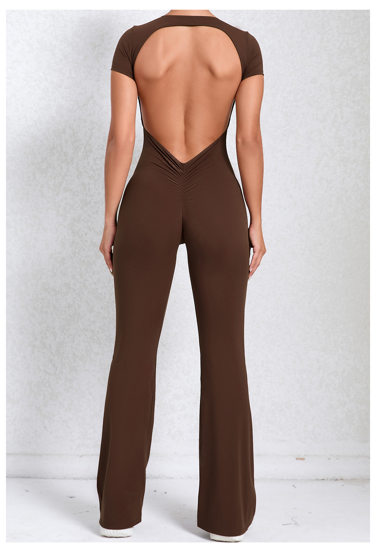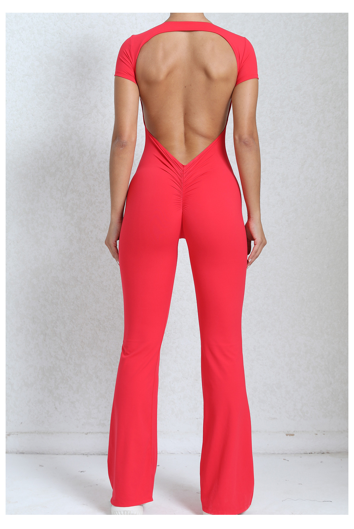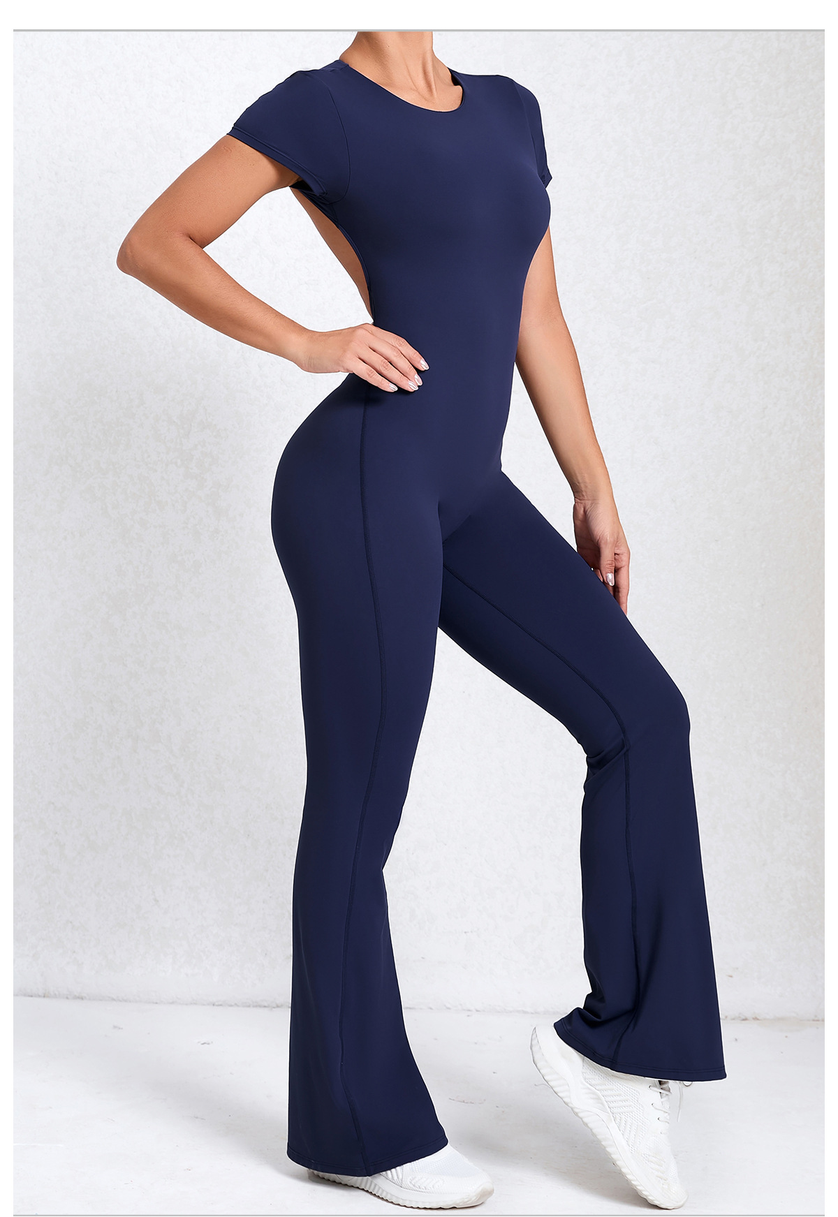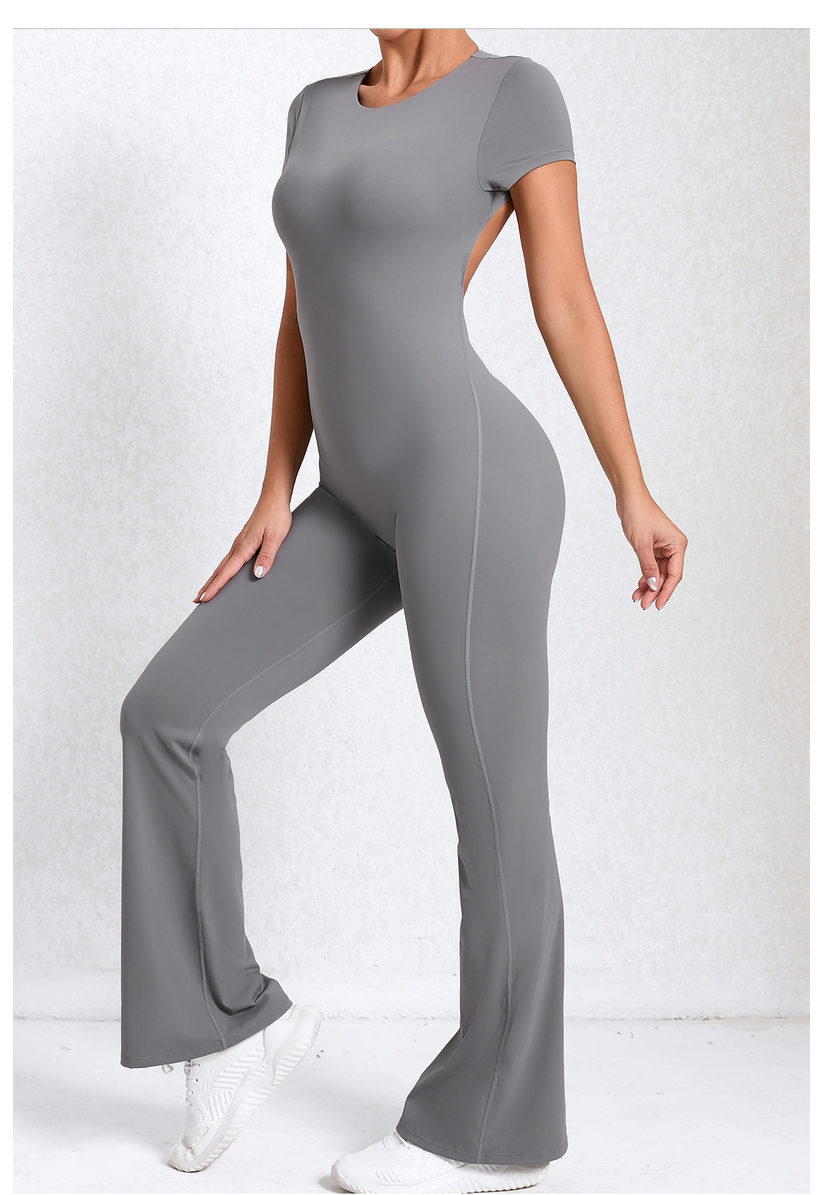 欧米のタイトな速乾のヨガのワンピースのヨガの服の半袖は背中を露出して尻を上げる運動のフィットネス服89071
