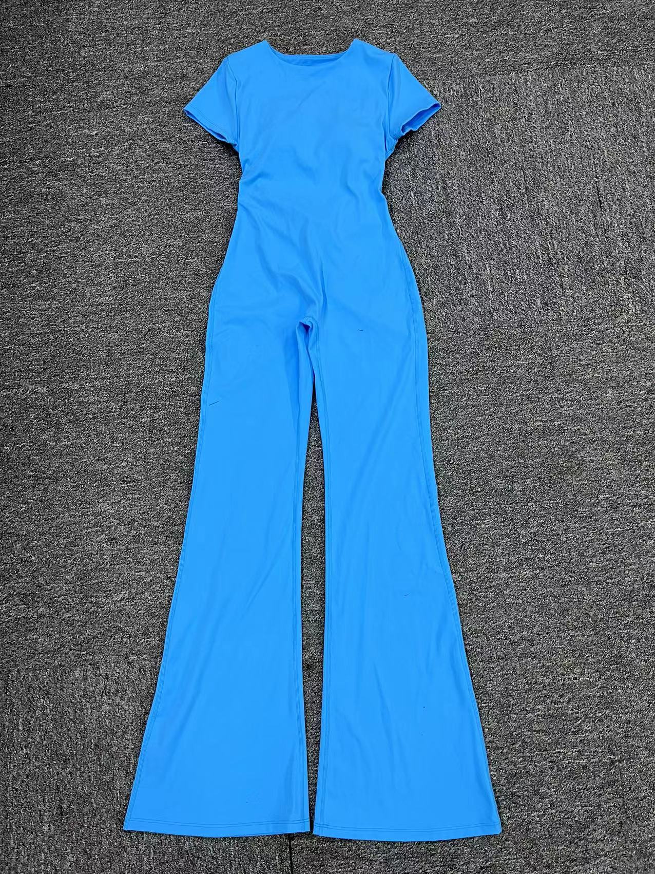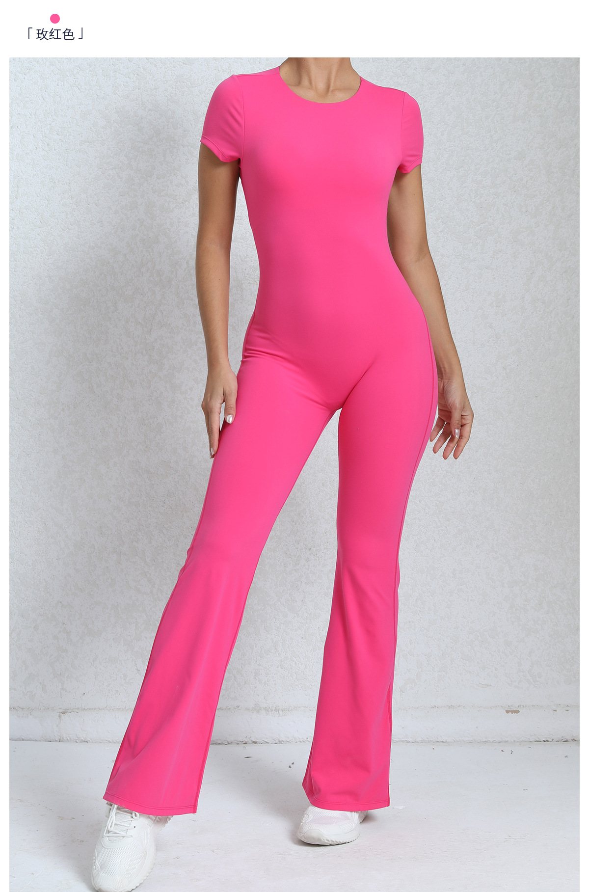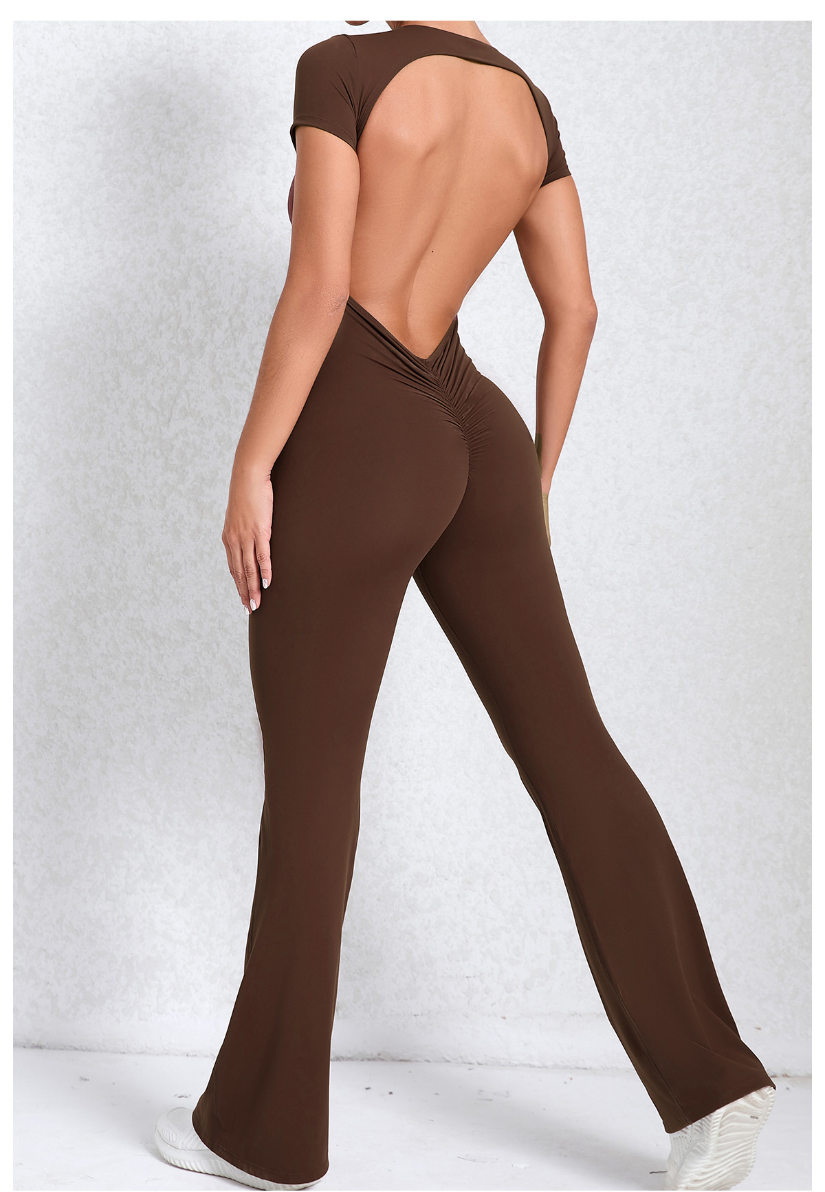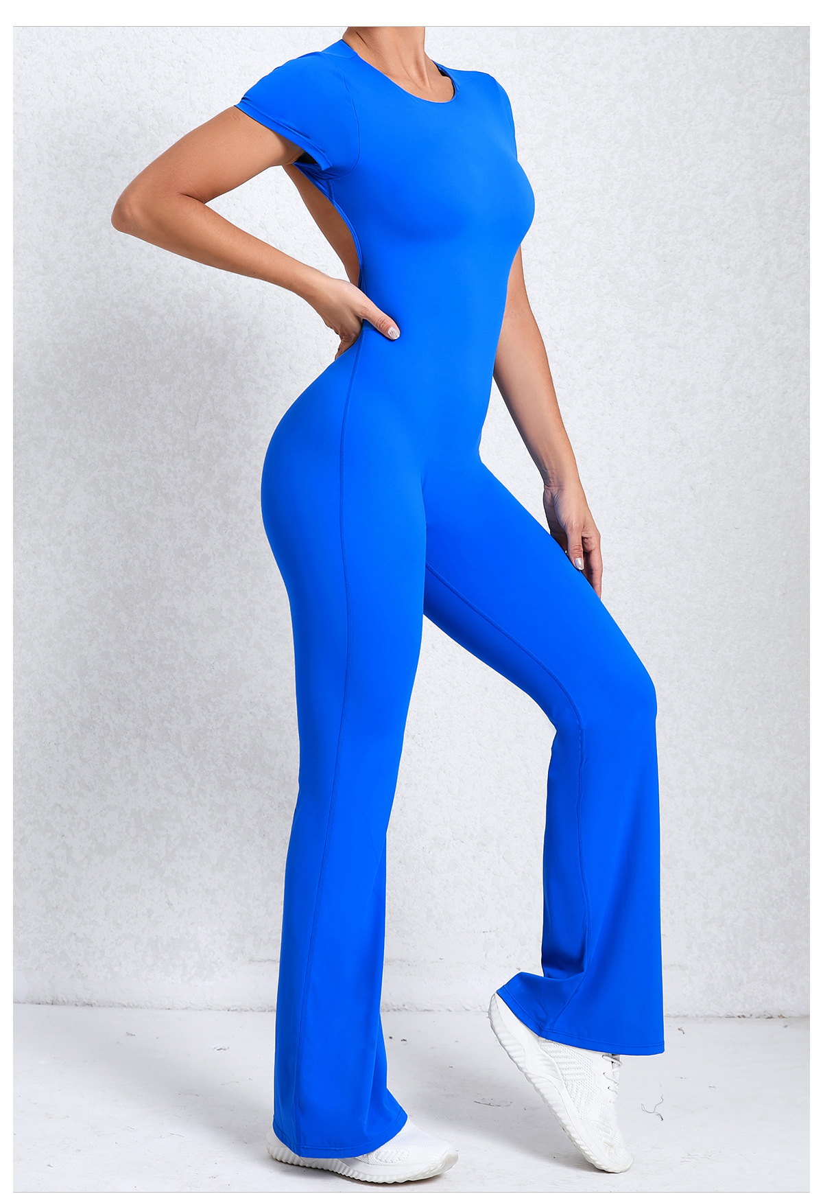 欧米のタイトな速乾のヨガのワンピースのヨガの服の半袖は背中を露出して尻を上げる運動のフィットネス服89071