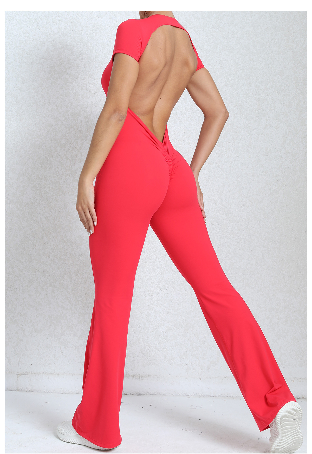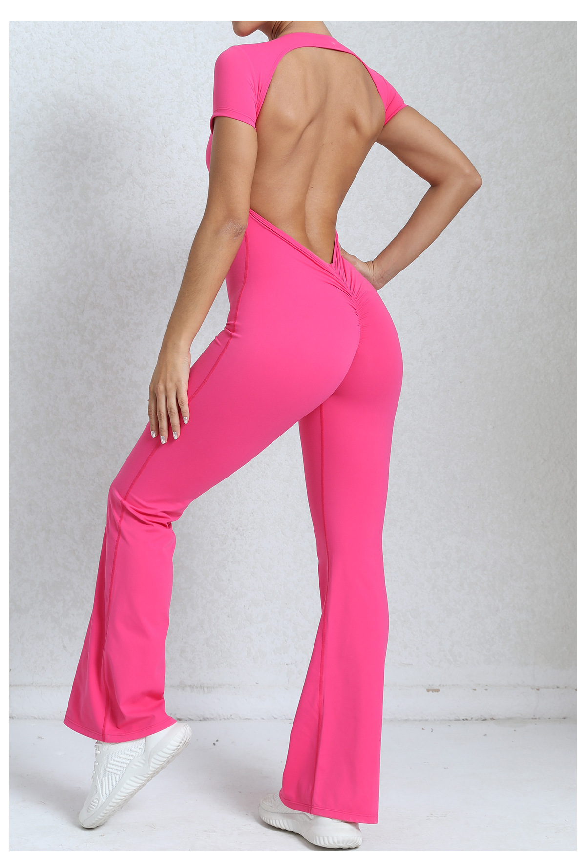 欧米の透かし彫りの美背の半開きのファスナーの連体服の蜜桃の尻の運動のフィットネスの大きい露背の速乾の連体のヨガの服