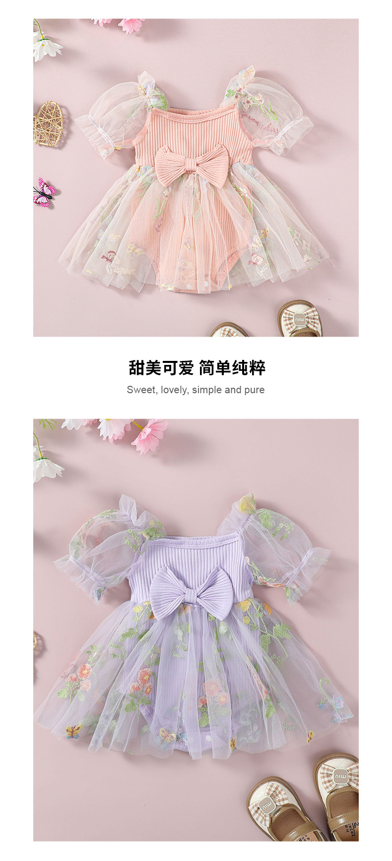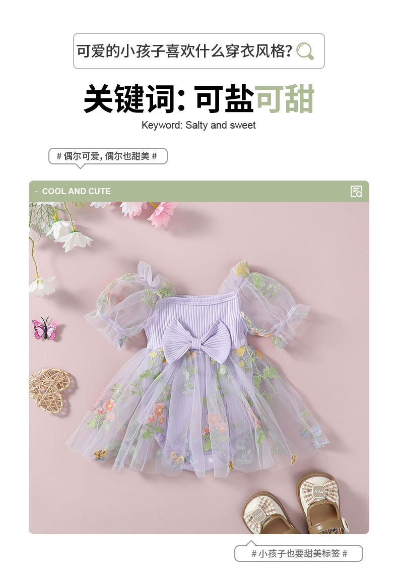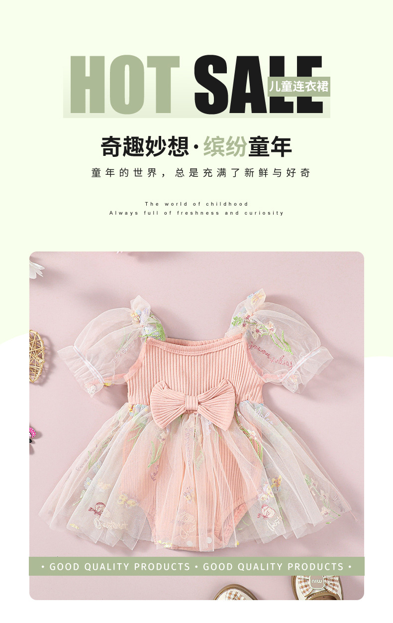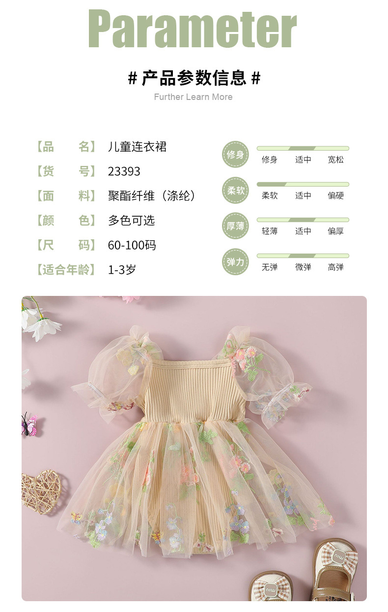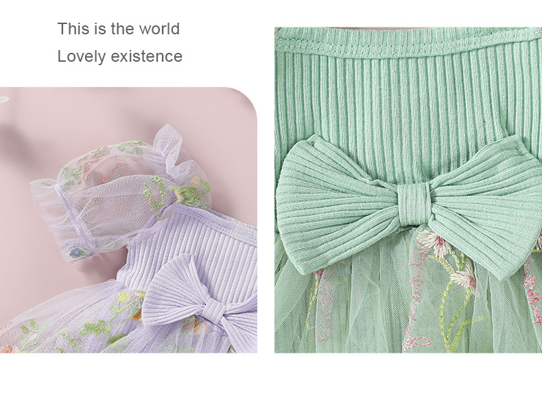 子供用妖精姫ドレス、おしゃれな切り替えデザイン、刺繍入り花柄ワンピース、女の子用メッシュスカート、ロンパーススカート