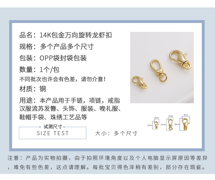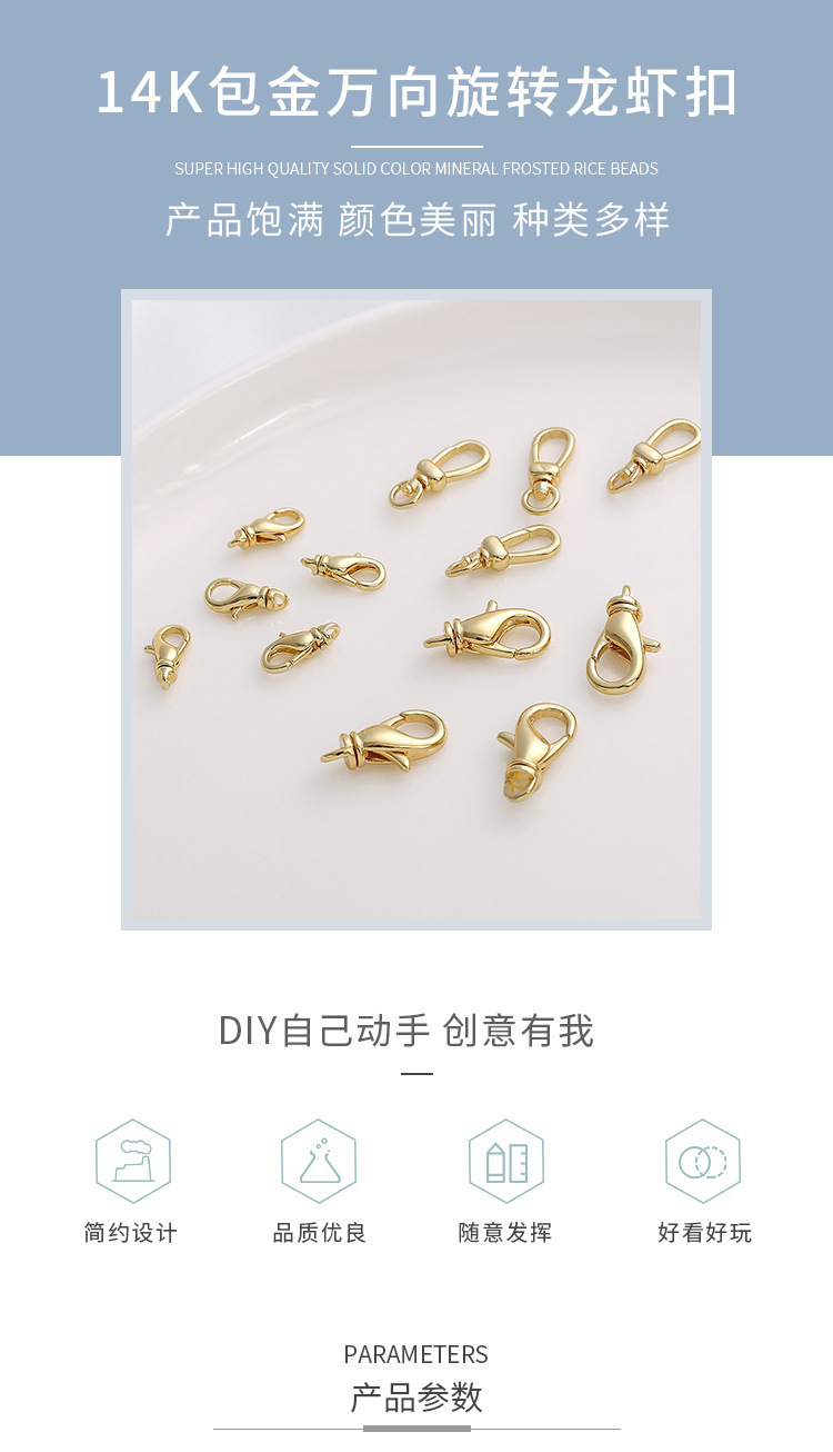 保色14k包金回転ロブスターバックル手作りdiyブレスレットネックレスアクセサリー万象回転バックル