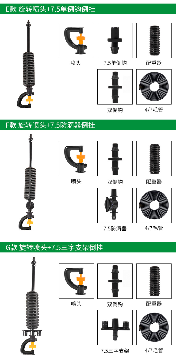農業トンネル吊り下げ360度g型回転小雨霧化ノズル園林灌漑降温プラスチック吊り下げノズル