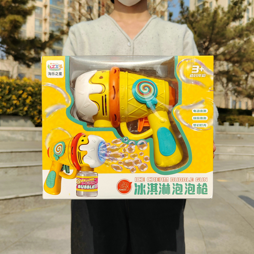 子供のアイスクリームバブルガンハンドヘルドライト多孔質全自動バブルマシン屋外春のお出かけ屋台おもちゃ卸売
