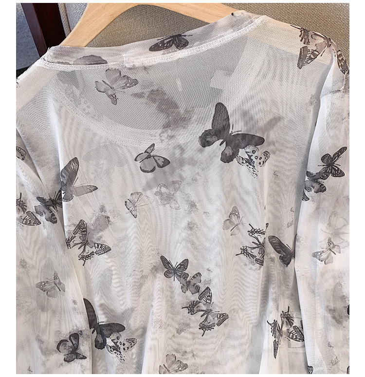 说明:表面网状,整体摸着是比较冰凉的,半透明,透气性很好,可以作为防晒衣外穿,需要搭配美背穿哦。