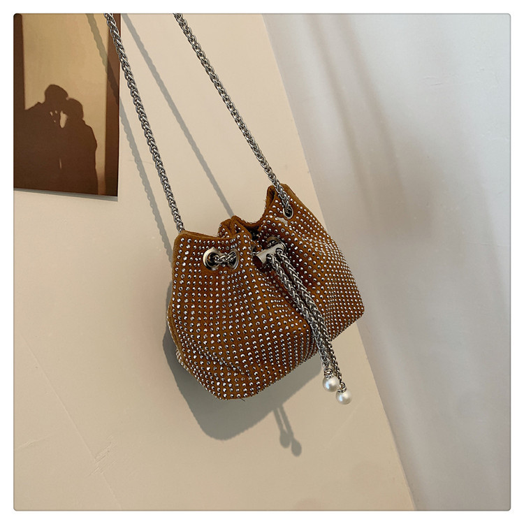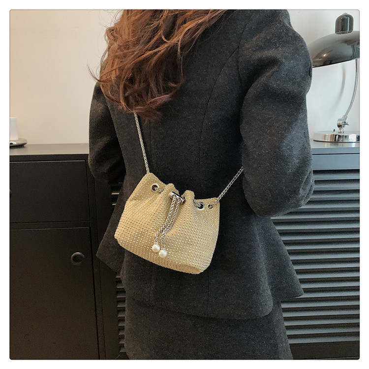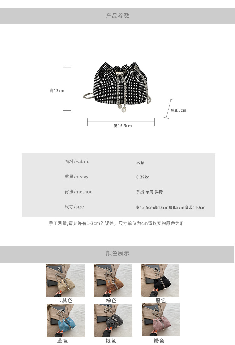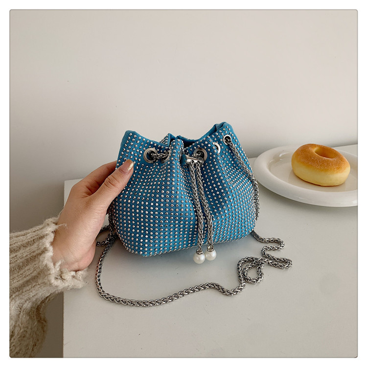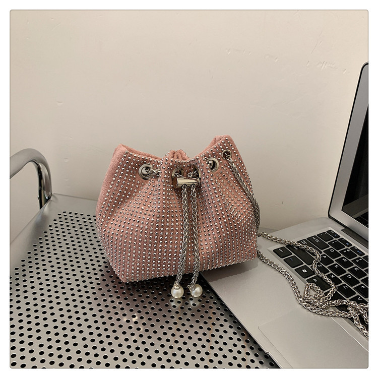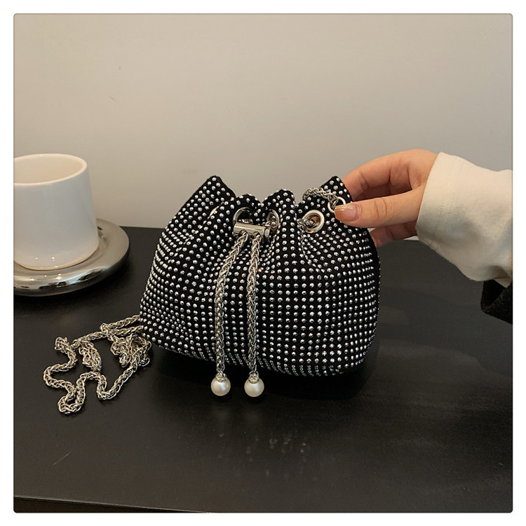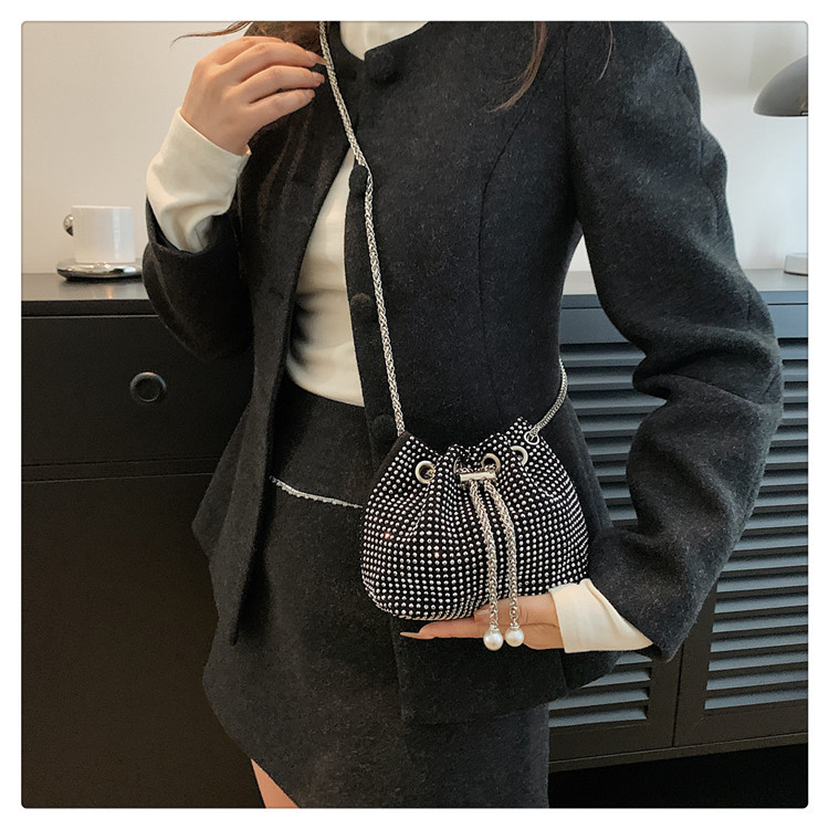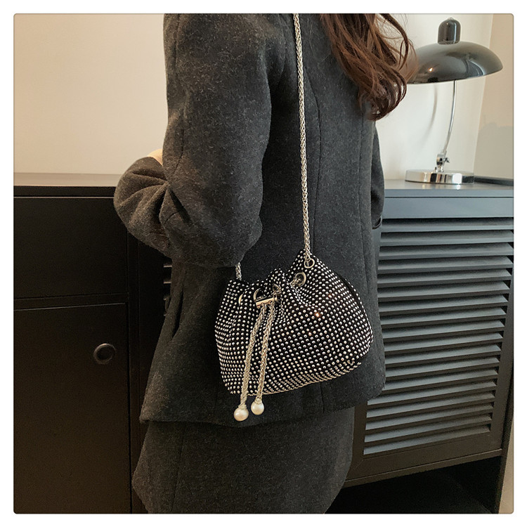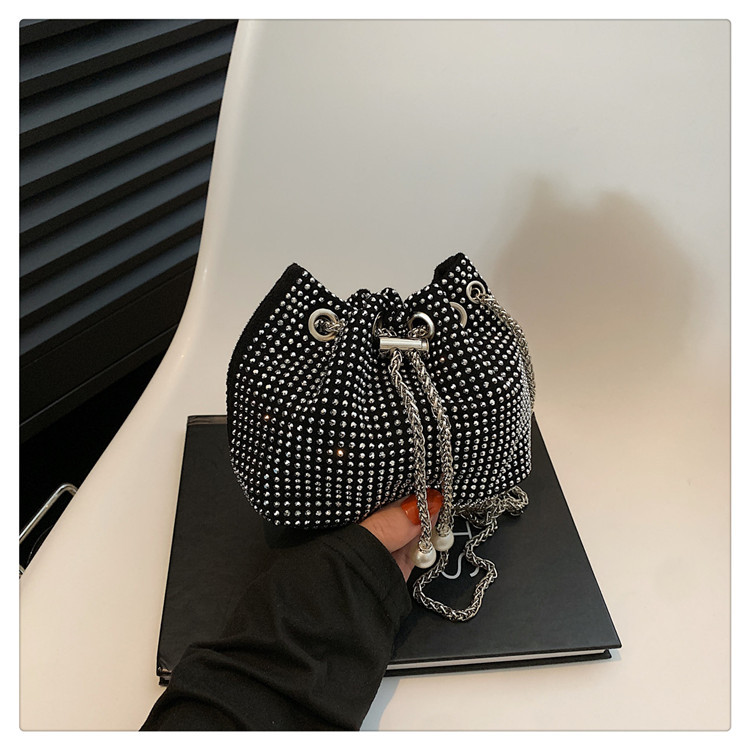 亚马逊热销满钻水桶包女法式单肩包小众设计镶钻手提包女士链条斜