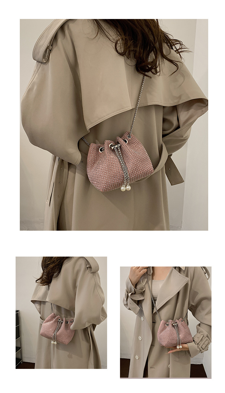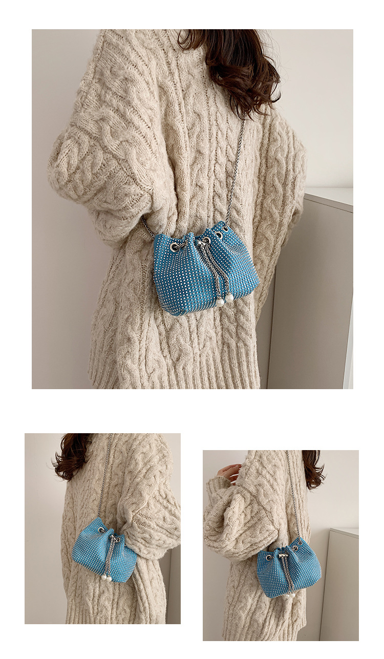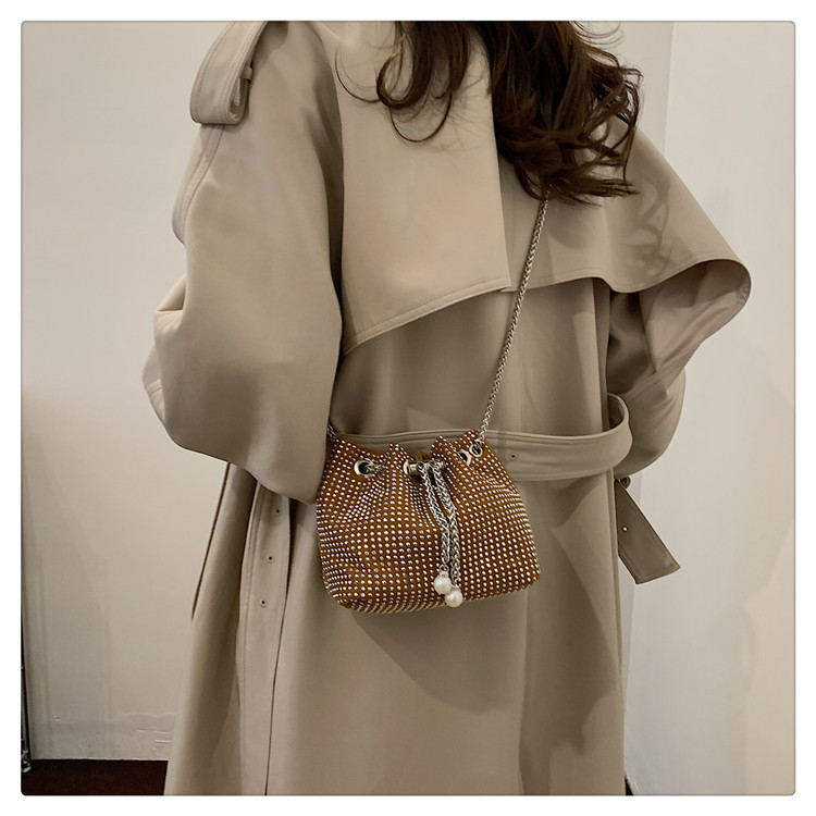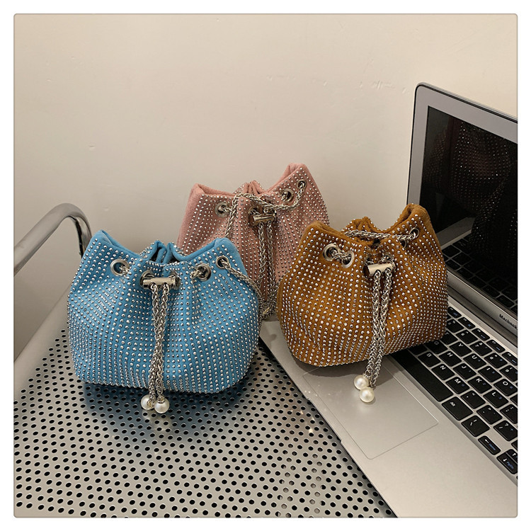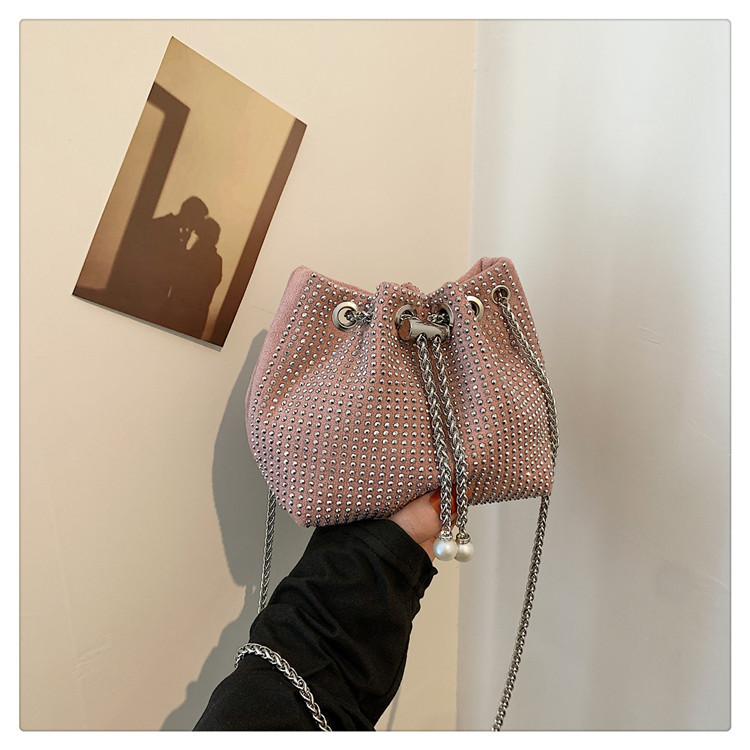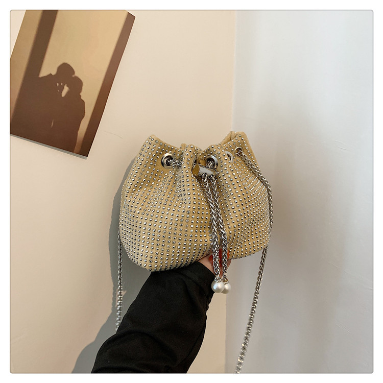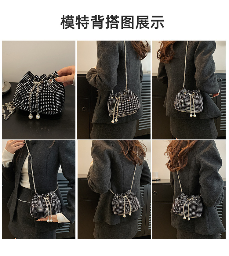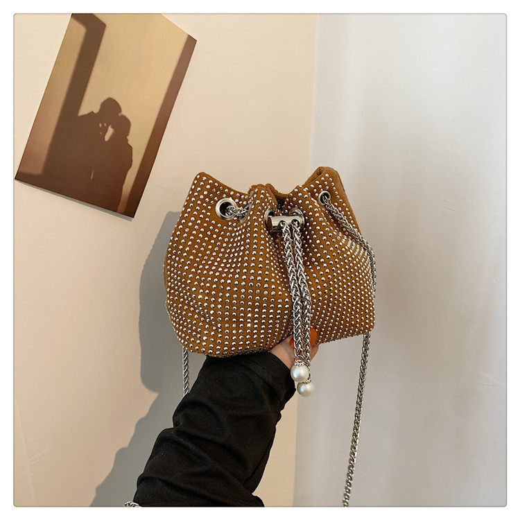 亚马逊热销满钻水桶包女法式单肩包小众设计镶钻手提包女士链条斜