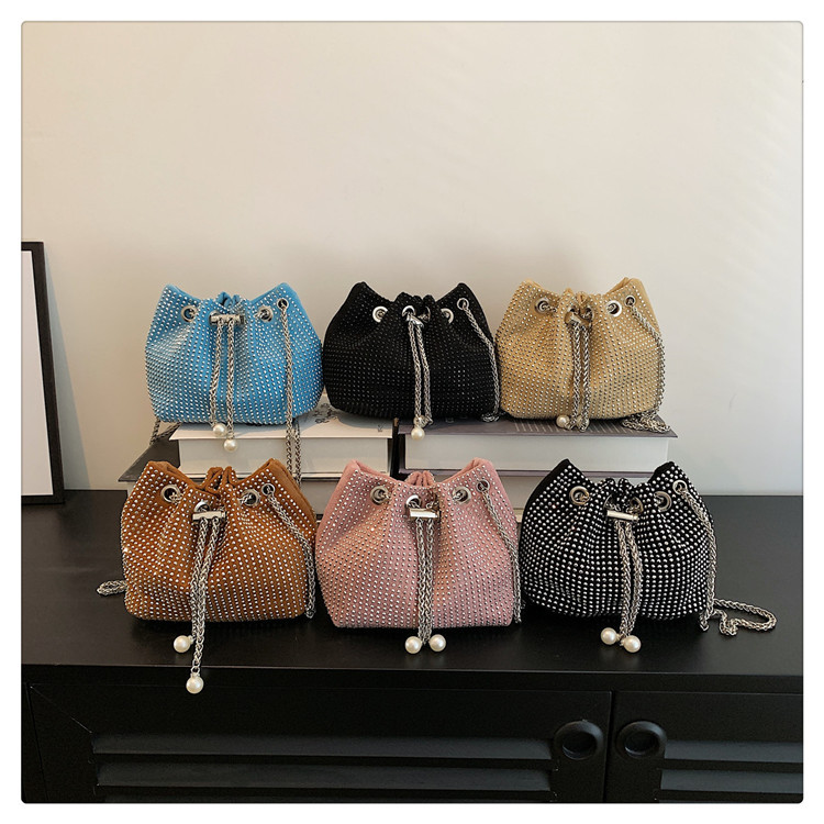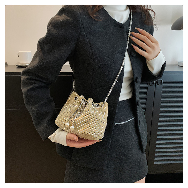 2025 新しいラインストーンバッグチェーンフルダイヤモンド小さなバッグバケットバッグニッチファッション多用途トレンドバッグクロスボディバッグ女性のバッグ