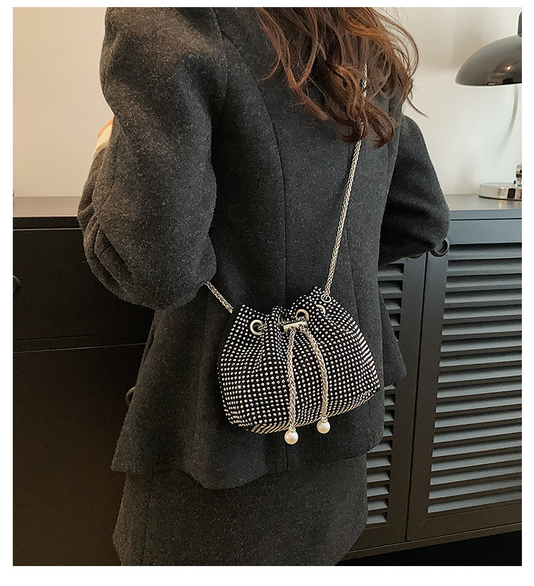 镶钻抽绳水桶包包女2025新款亮钻水钻满钻包爆款高级感链条斜挎包