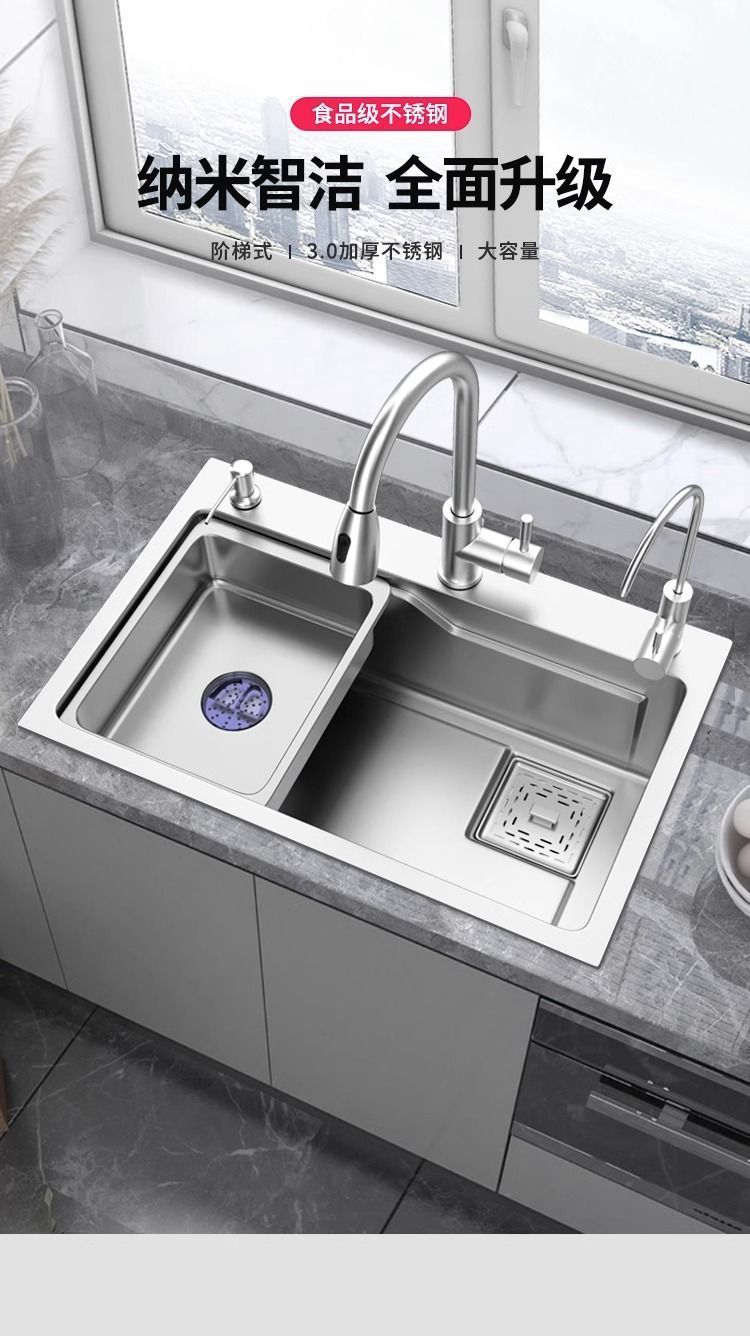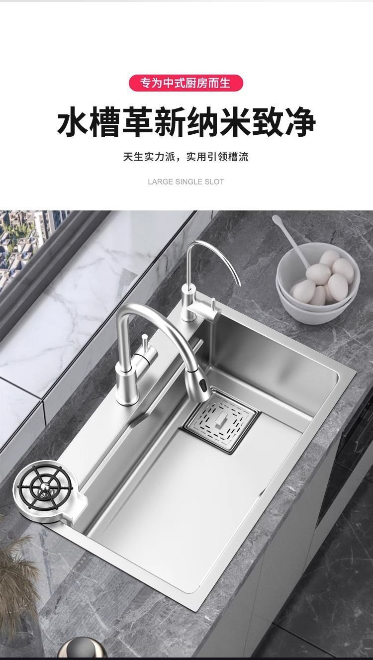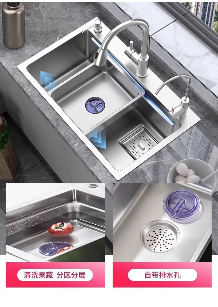 台所の家庭用池の野菜を洗うステンレス304水槽の厚い手作りの単槽の皿洗い池のセット