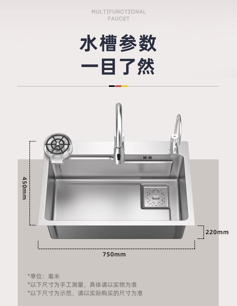 ステンレスの野菜を洗う双槽の水槽の大きい単槽の家庭用の台所は手で糸を引いて厚い食器洗いの池の一体の台下のたらいを洗います。