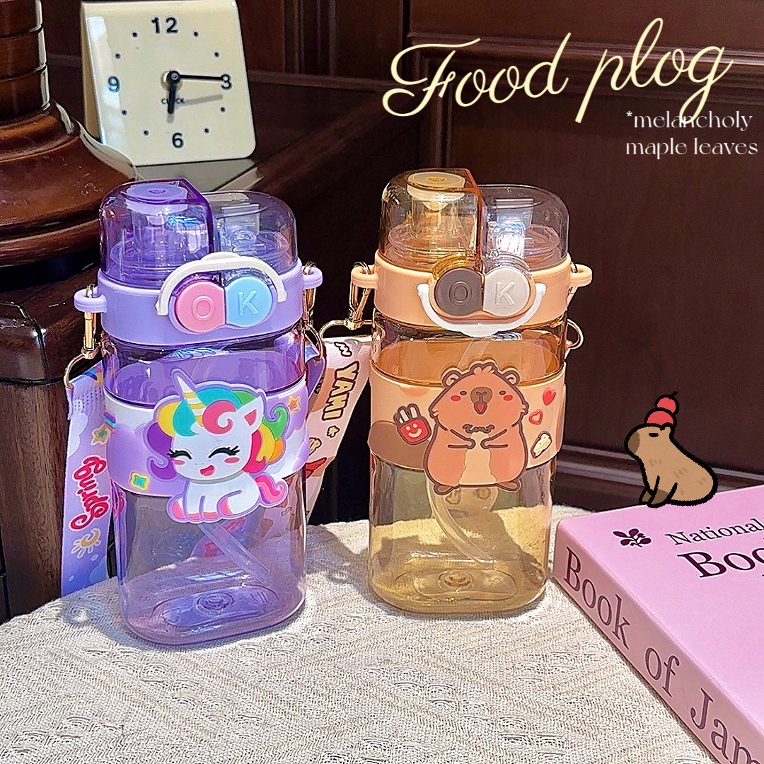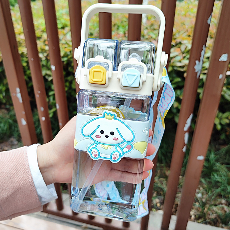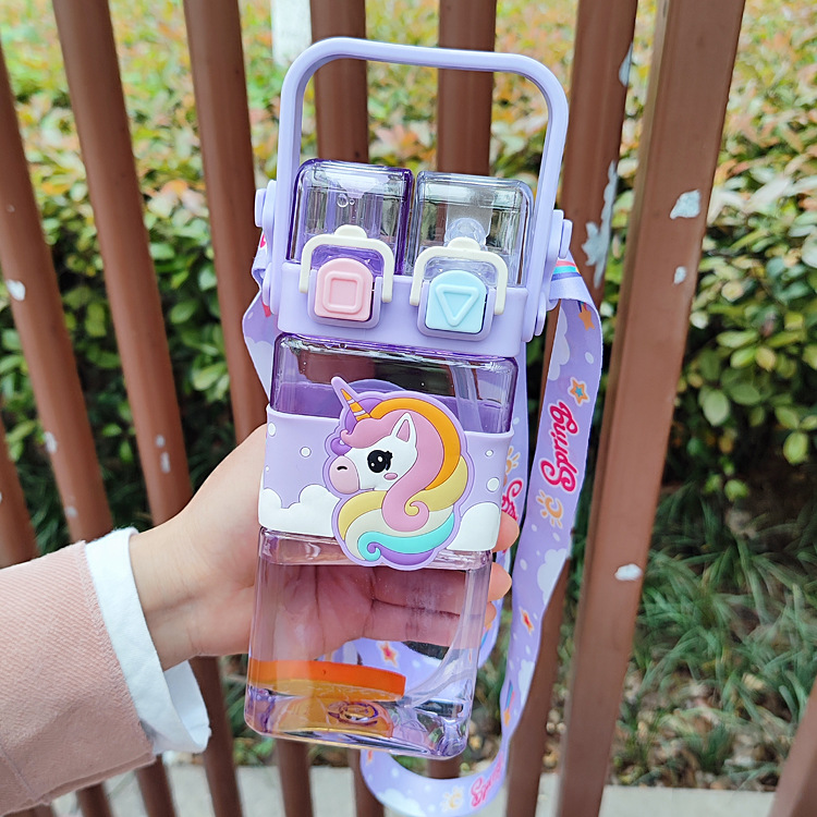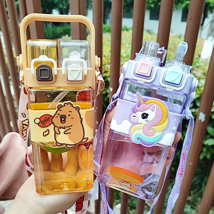 漫画かわいいプラスチックカップ学生スポーツウォーターボトル大容量ストローカップ女の子ポータブルダブルドリンク卸売カップ